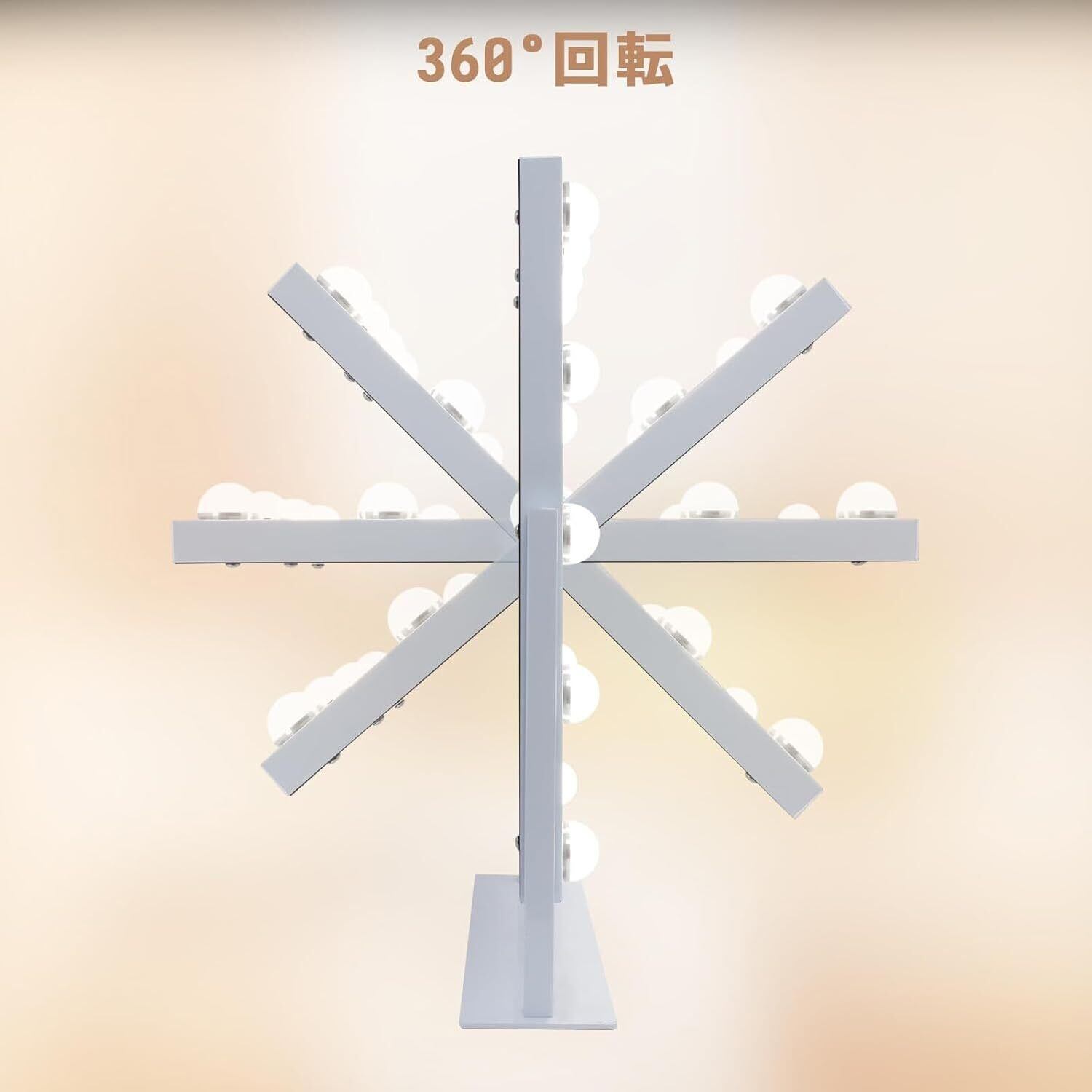 360度垂直回転式 上下360度で角度を調節され、お好きな角度でメイクが楽にできます。丈夫で安定な金属スタンドを使用して、耐久性に優れており、後ろに傾けても倒れません。