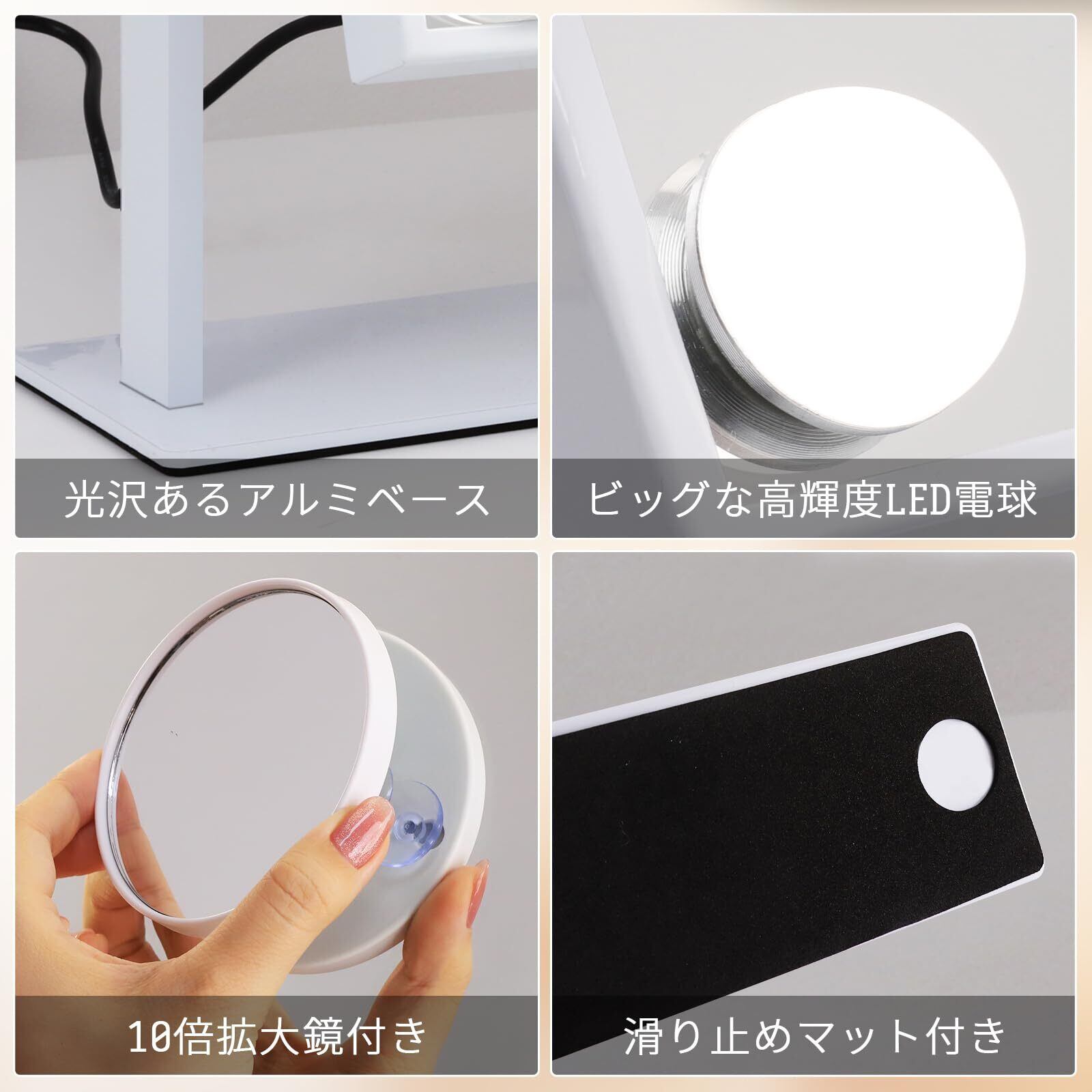 12個LEDライト 化粧ミラー 12個高輝度LED電球が搭載され、本当の自分を映す、ムラなく顔全体を均一に照らすことができます。