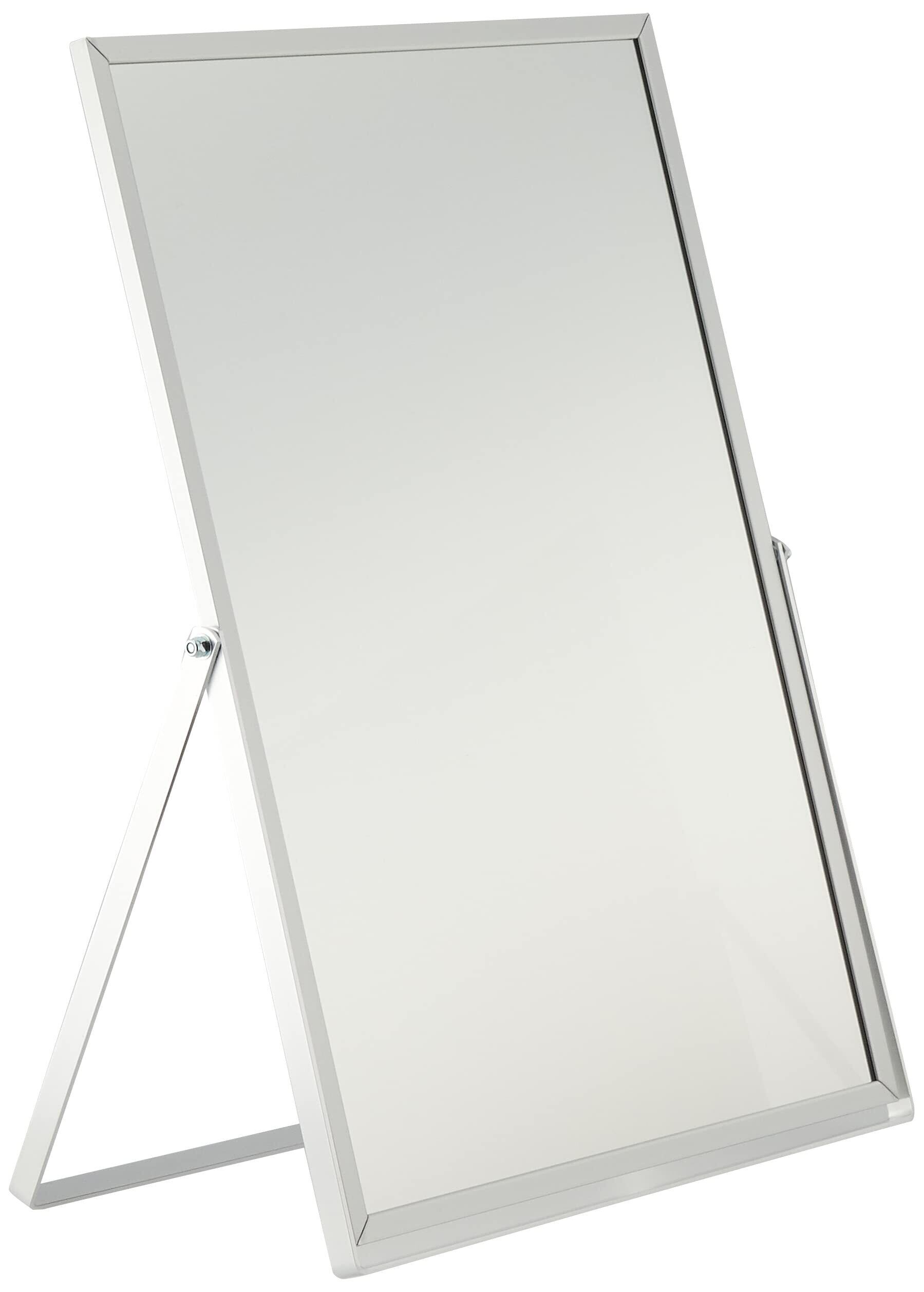 ●アルミフレームがおしゃれな大きめの卓上スタンドのミラー、角度は自由に調整可能