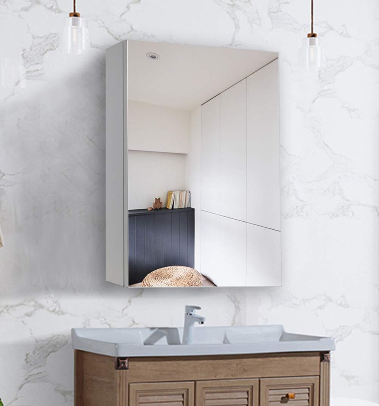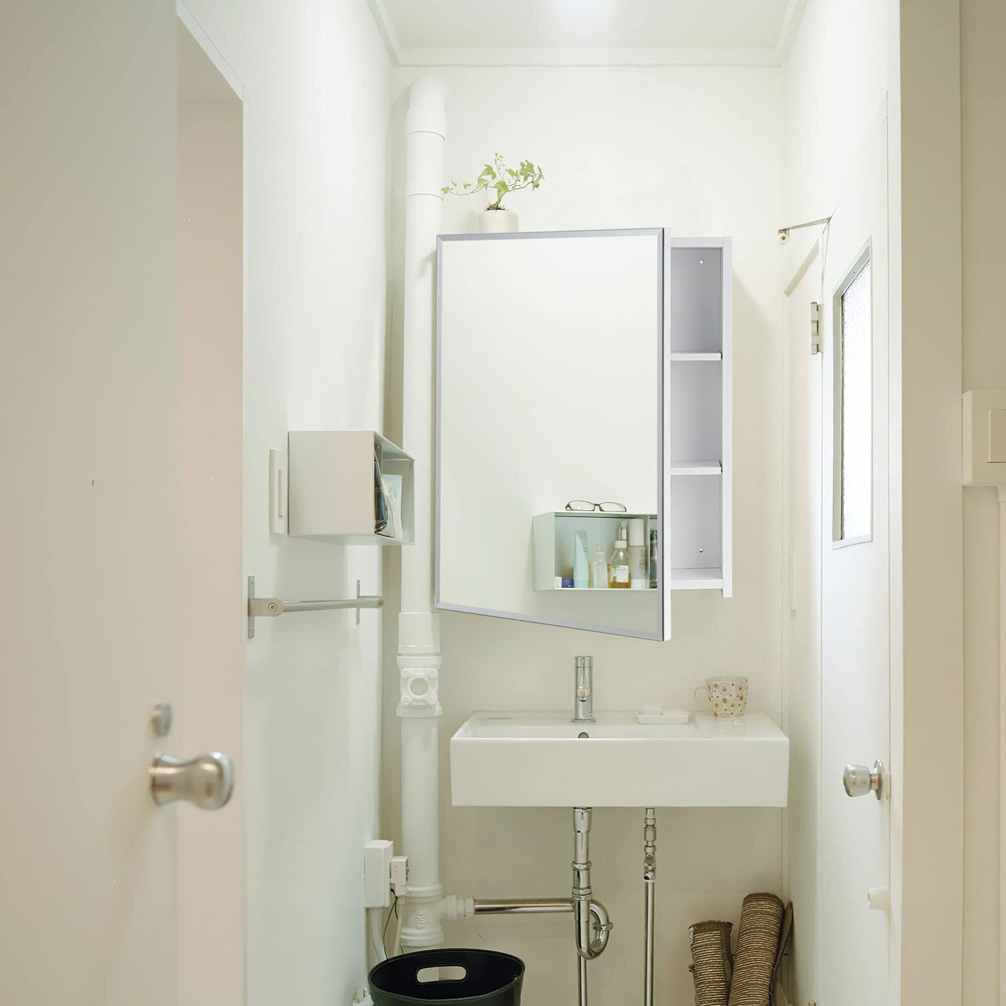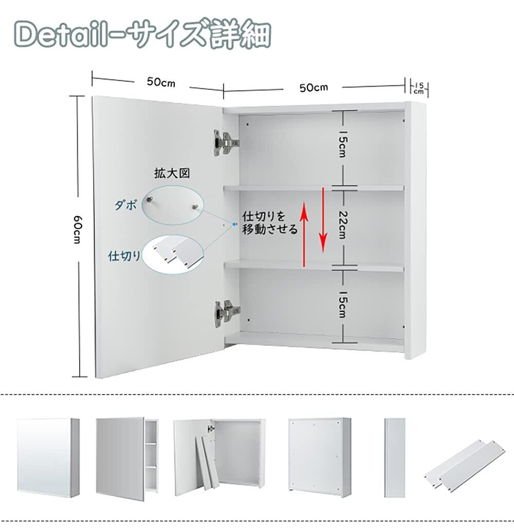 mirahope ミラーキャビネット キャビネット 50x60CM ホワイトオーク 洗面鏡 浴室鏡 洗面化粧台 収納付き 壁掛け 洗面所 浴室用