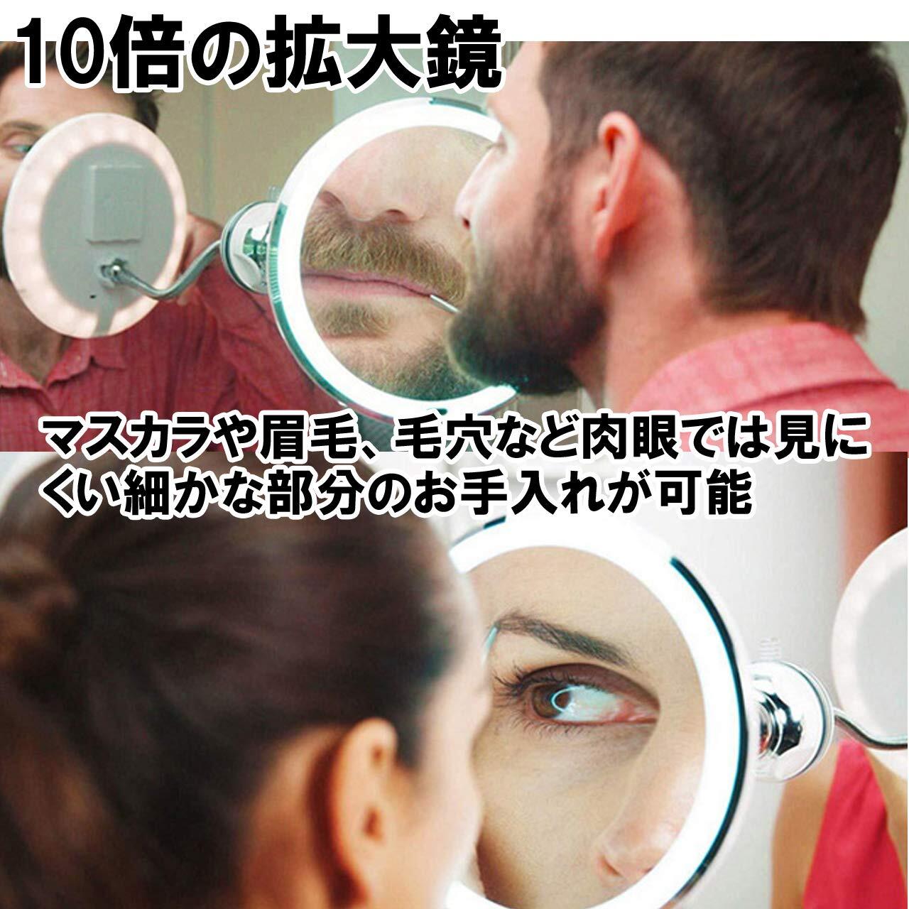 Felimoa メイクミラー 10倍 化粧鏡 拡大鏡 LED 回転 フレキシブルアーム 壁付けミラー