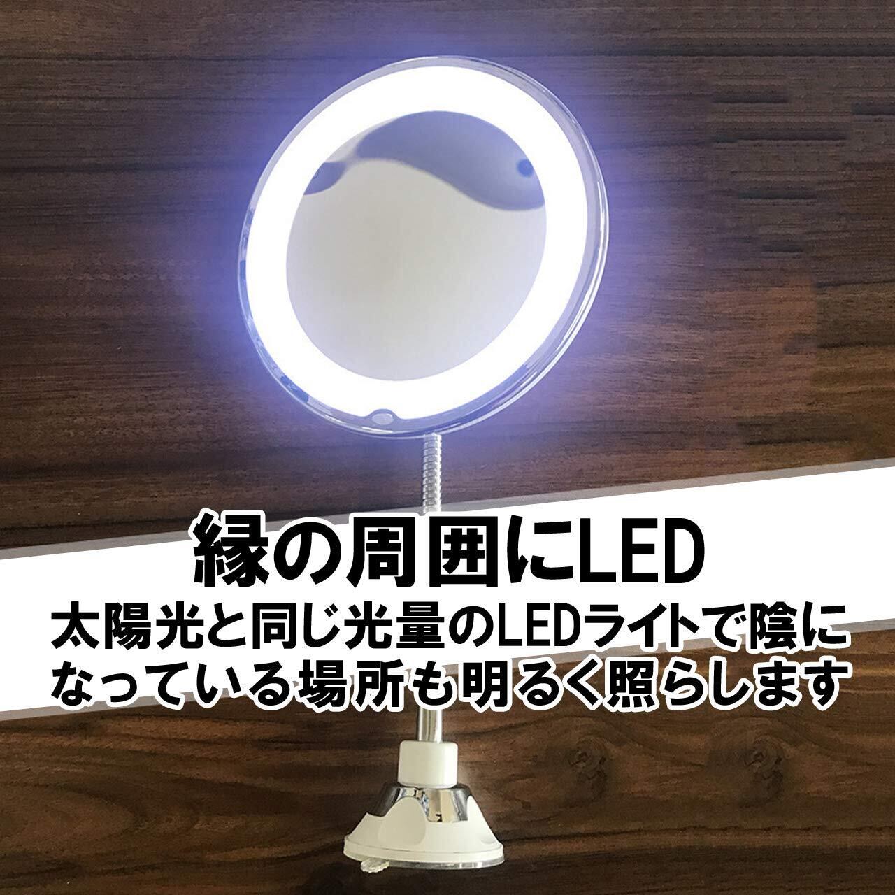 【新春セール】Felimoa メイクミラー 10倍 化粧鏡 拡大鏡 LED 回転 フレキシブルアーム 壁付けミラー