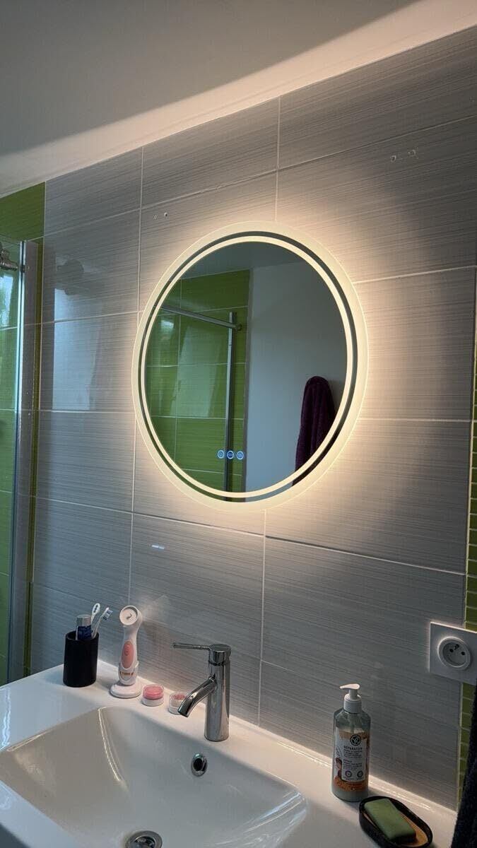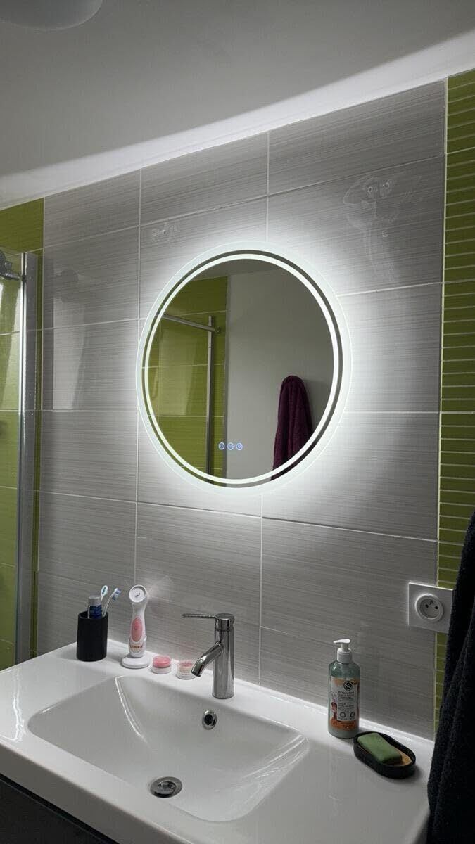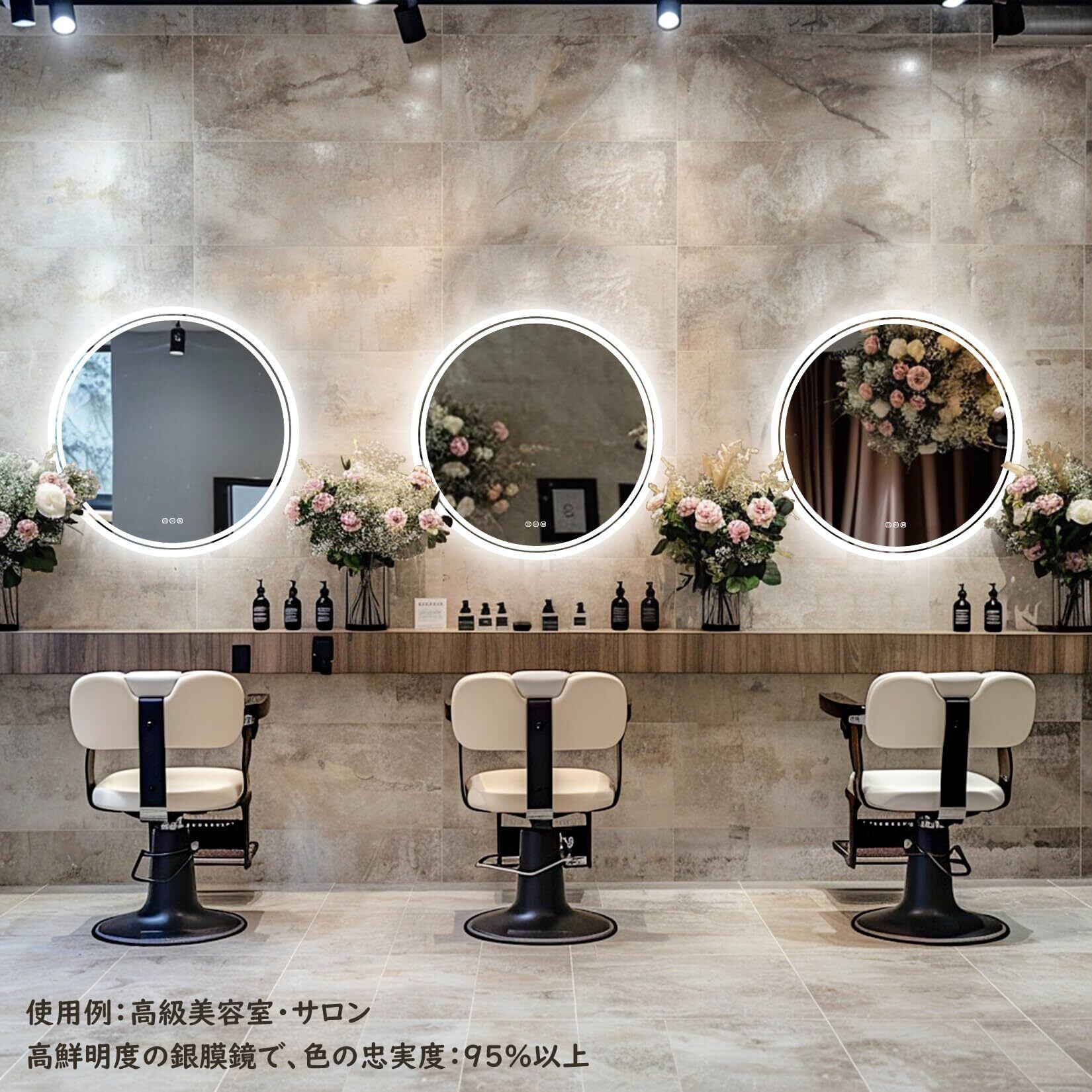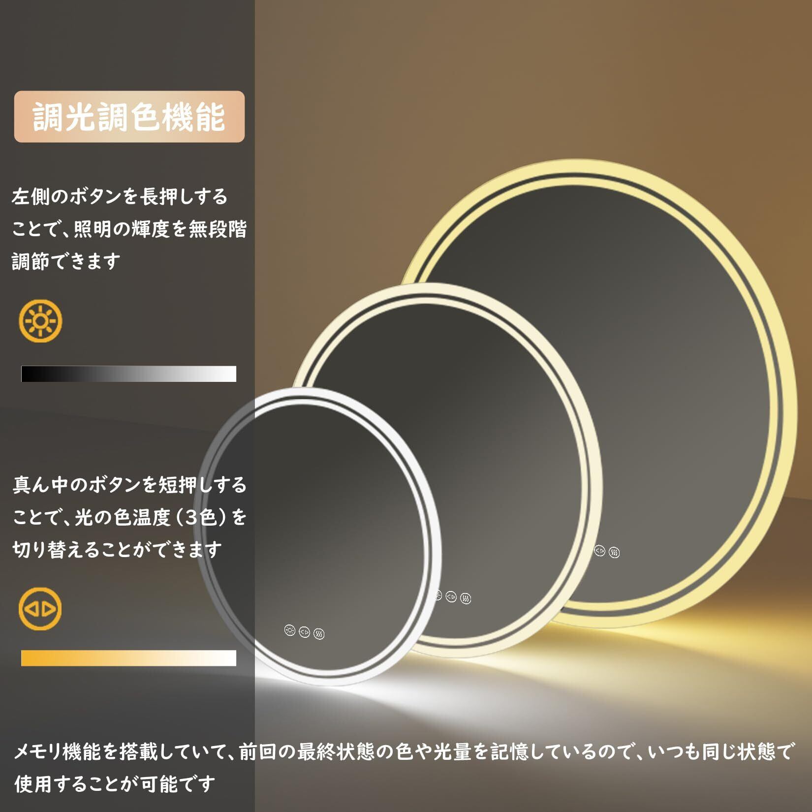 Susire 洗面台鏡 ledライト付き 丸型 曇り止め 洗面鏡 壁掛け 女優ミラー 洗面所 浴室化粧鏡 おしゃれ 曇らない鏡 お風呂鏡 ウォールミラー 60