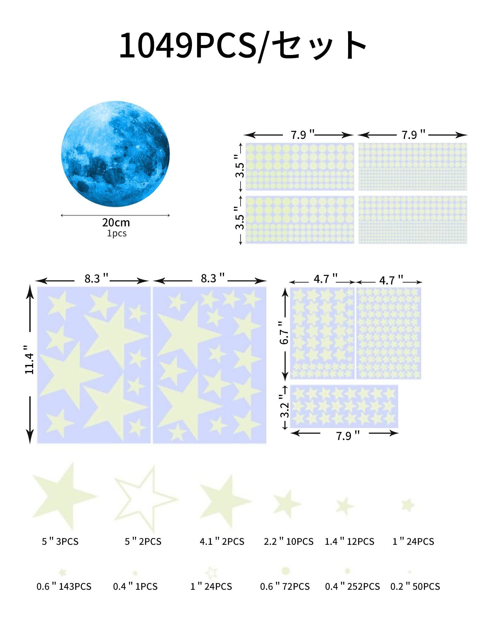 happykau 夜光シール(1049点セット) 蓄光星+月+流星 光るシール 光るウォールステッカー 星シール 蓄光シール きらきら 光るシール窓ステッカー 星空 きらきら 部屋飾り雰囲気満点 部屋におしゃれ 天丼 部屋 装飾品 子供部屋用 (青)