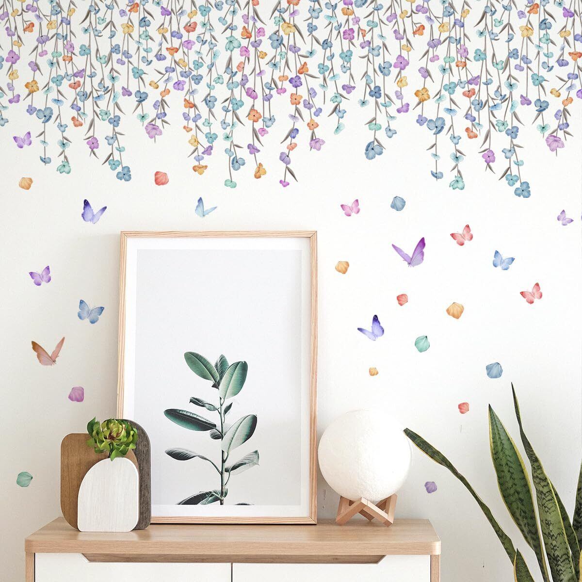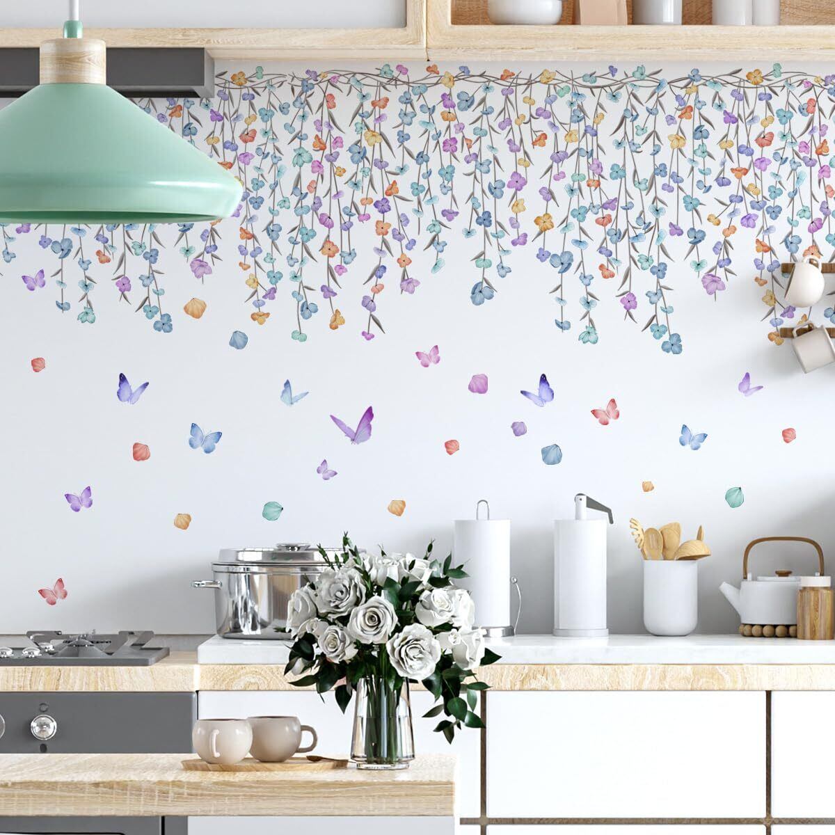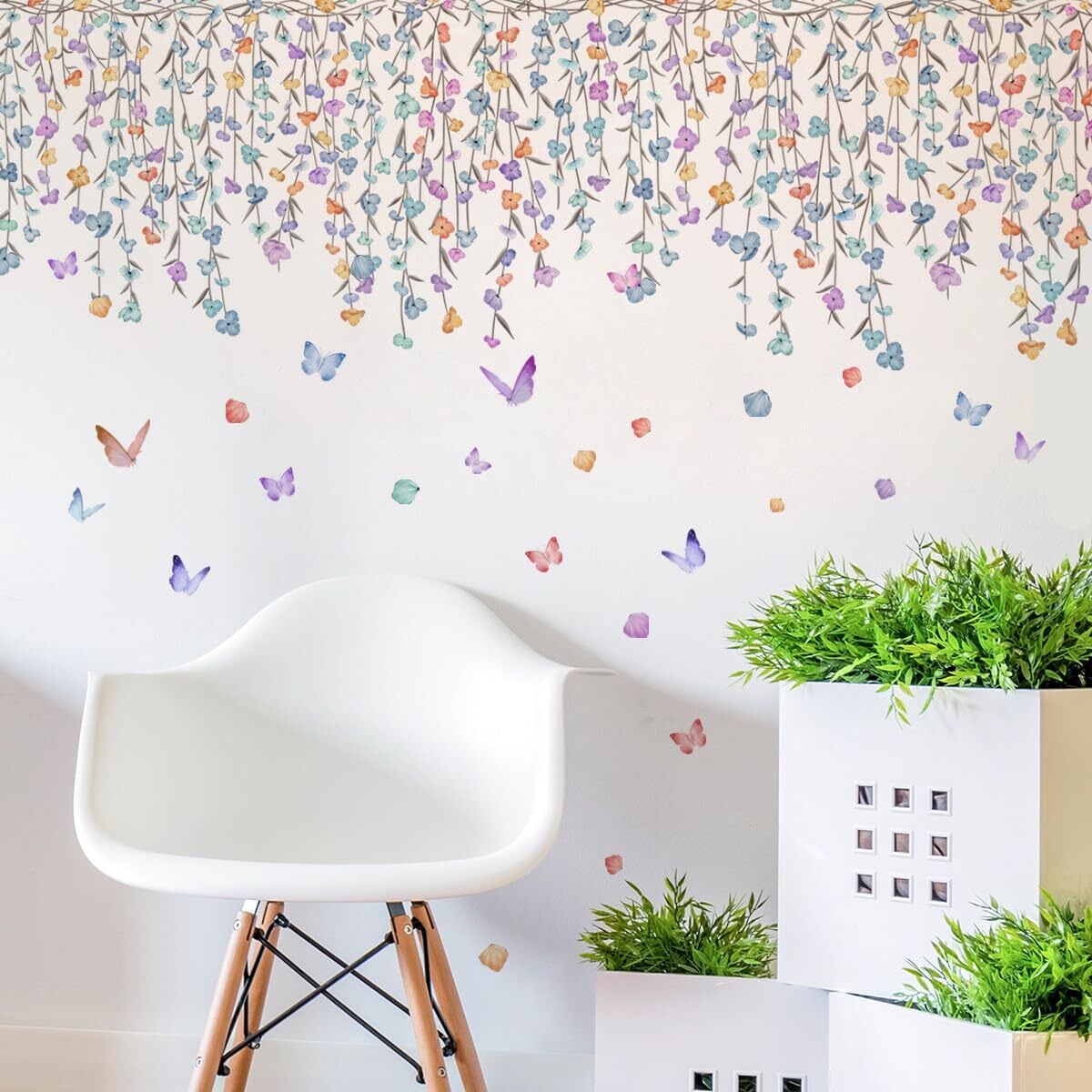 観葉植物 ウォールステッカー 植物 籐 花 蝶 壁紙シール ステッカー おしゃれ リビングルーム ウォールシール ウォールペーパー 防水 壁すてっかー ウォールデコ 賃貸住宅 (07-Purple)