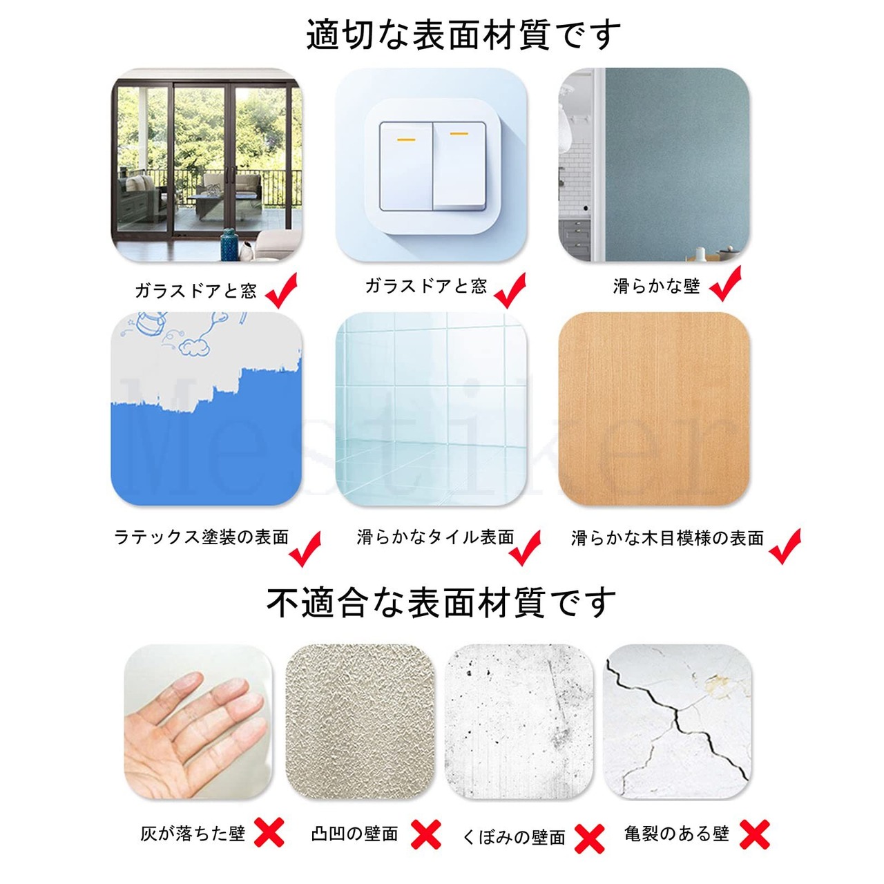 使用上のご注意:ウォールステッカーを取り付ける前に、壁が清潔で乾燥していて滑らかであることを確認してください。 ほこりっぽい、壊れた、または湿った壁にデカールを貼り付けないでください。