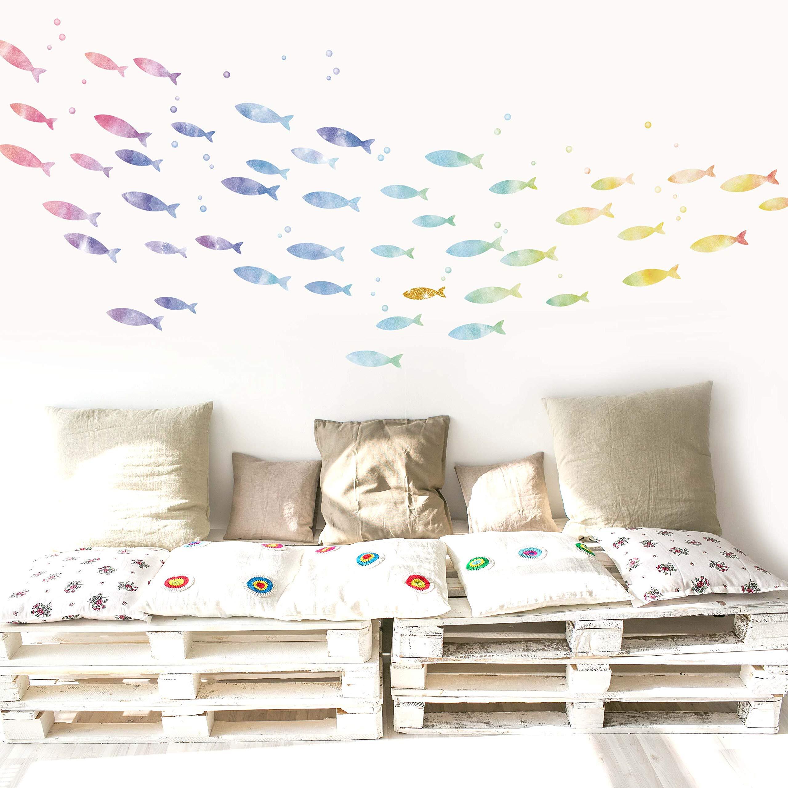 【人気商品】スクウェアショップ ウォールステッカー いにしえの魚群 w0187 魚 海 水族館 飾り かわいい 装飾 飾りつけ 男の子 女の子 アクアリウム 子供部屋 和柄