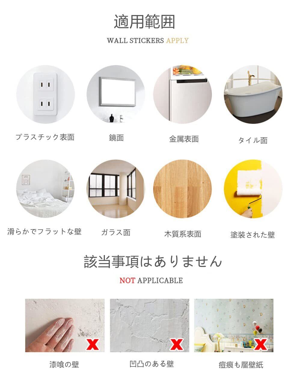 ■ ウォールすてっかー 適用 :部屋、寝室、書斎、玄関、キッチン、バスルーム、トイレ、階段、ドア、ガラス窓、幼稚園、賃貸住宅、店舗、レストラン、カフェなどの公共の場所に貼ることができます。鮮やかな色はあなたの人生に活力と幸福をもたらします。家族や友人へのプレゼントにも最適で