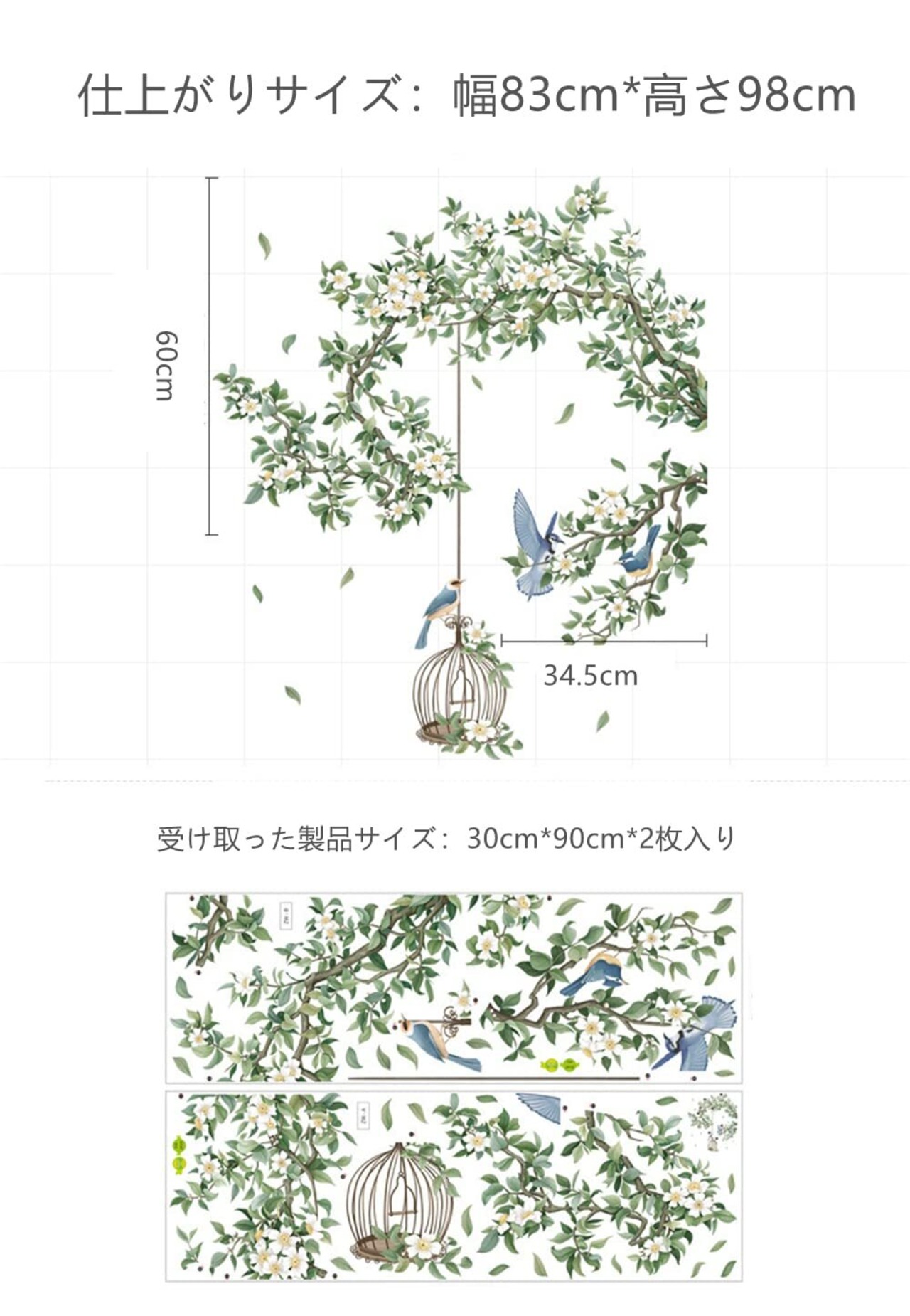ウォールステッカー 植物 おしゃれ 枝の上の鳥 鳥かご 小さな白い花 壁紙シール はがせる オシャレ 牧歌的な風 リビング 賃貸 ベッドルーム 壁に貼る 壁飾り 防水 ウォールすてっかー 剥がせる 粘着剤付き
