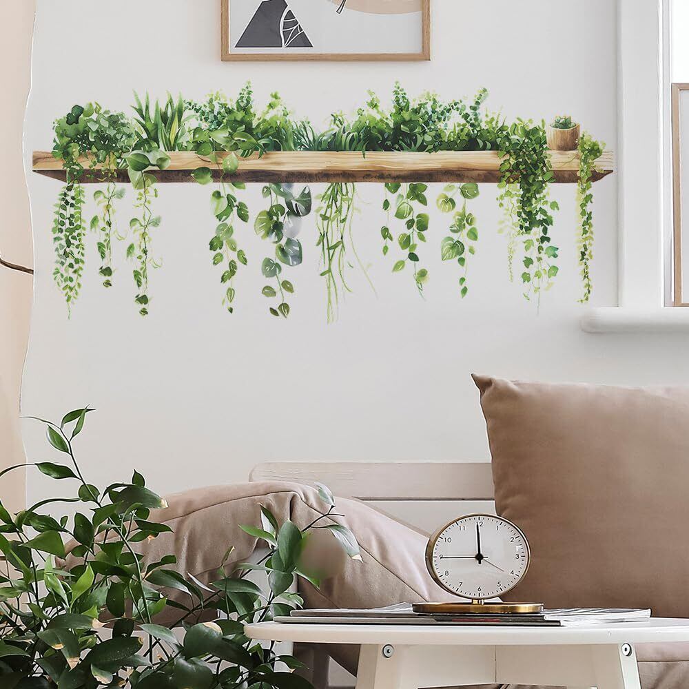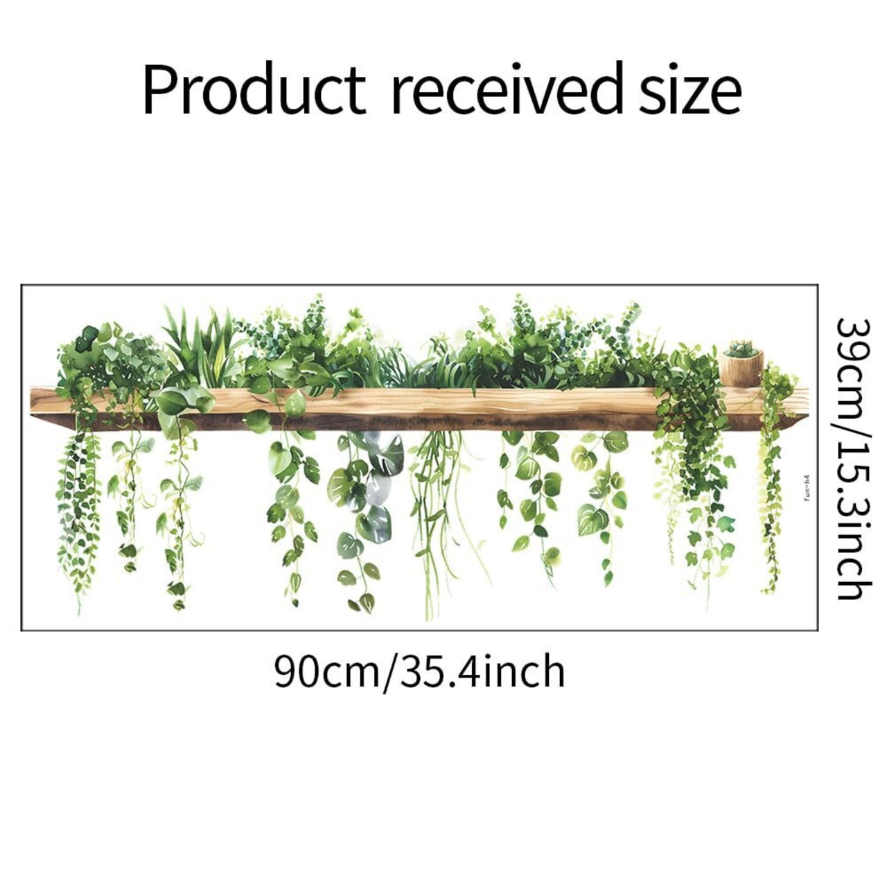 【ウォールステッカー サイズ】貼った後の寸法約88cm*37cm、頂いた商品のサイズ:39㎝×90㎝*1枚.自然な緑の吊り下げ植物デザインで、室内に癒しの空間を演出します