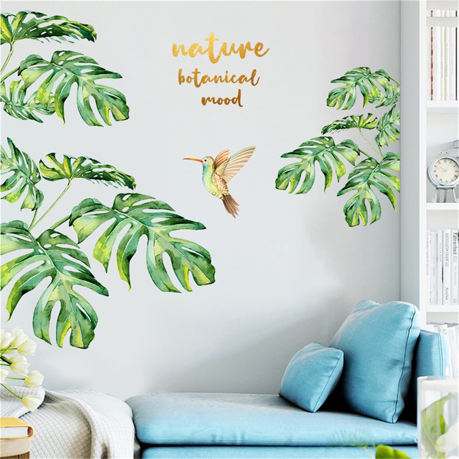 【特価セール】ウォールステッカー 観葉植物 南国 ハーミングバード 緑 景色 壁紙シール はがせる オシャレ 北欧 Nature Botanical Mood ウォールすてっかー 御洒落 リビングルーム 寝室 壁飾り 剥がせる 粘着剤付き