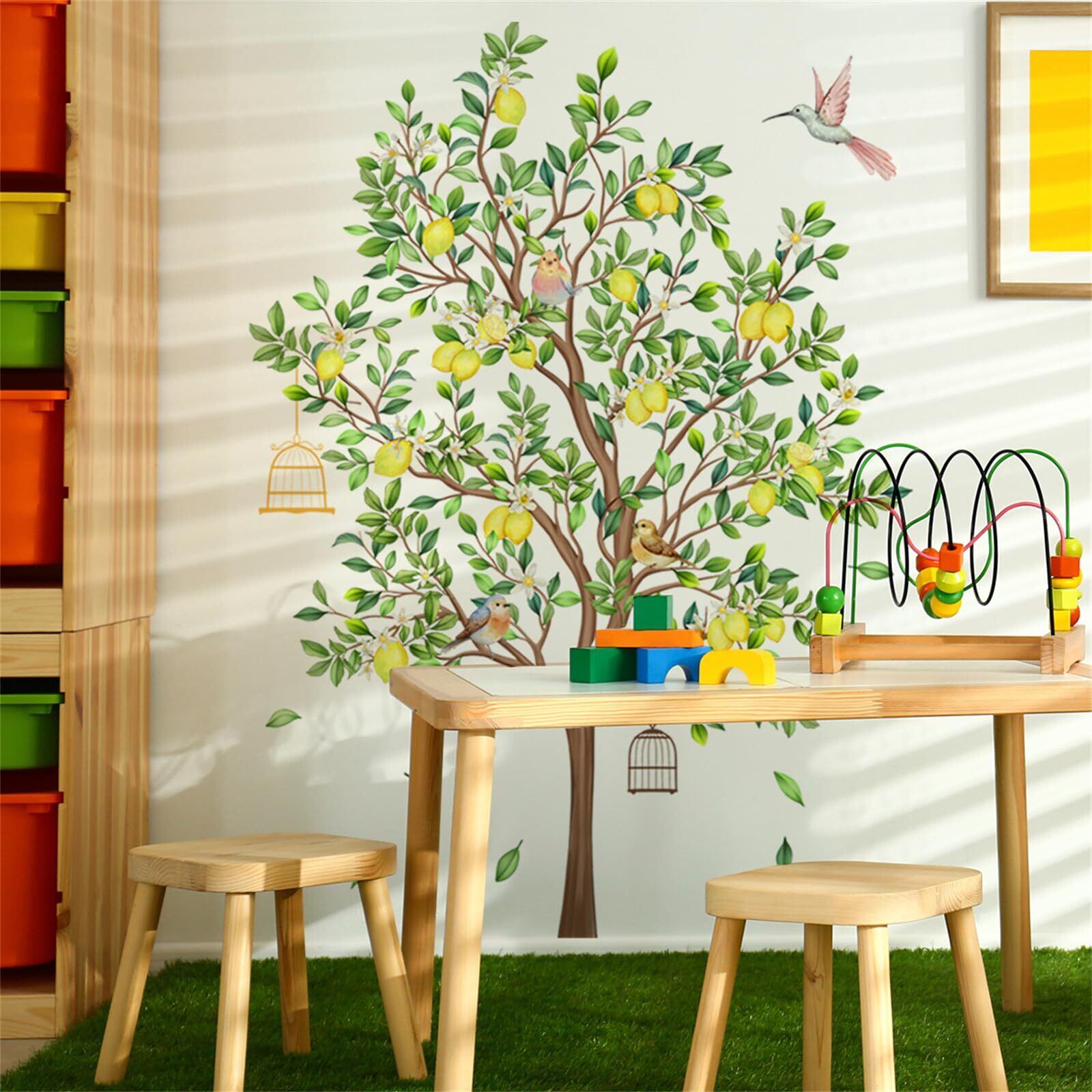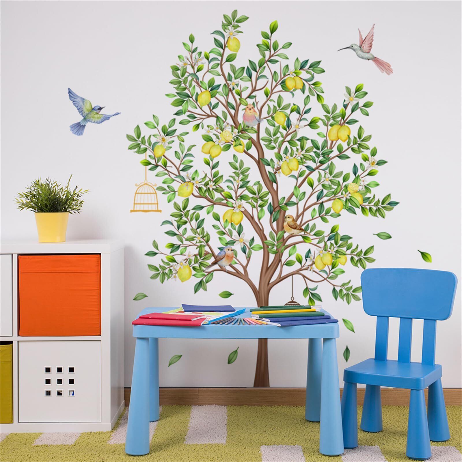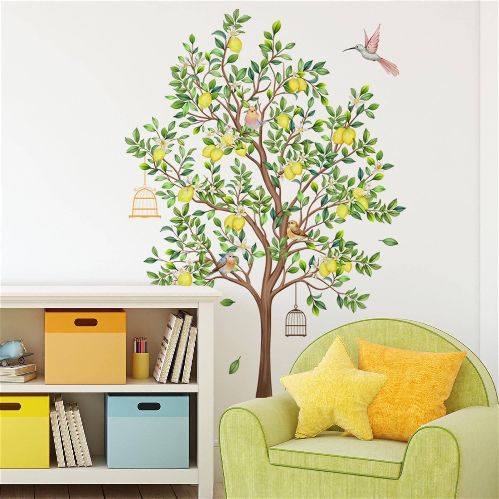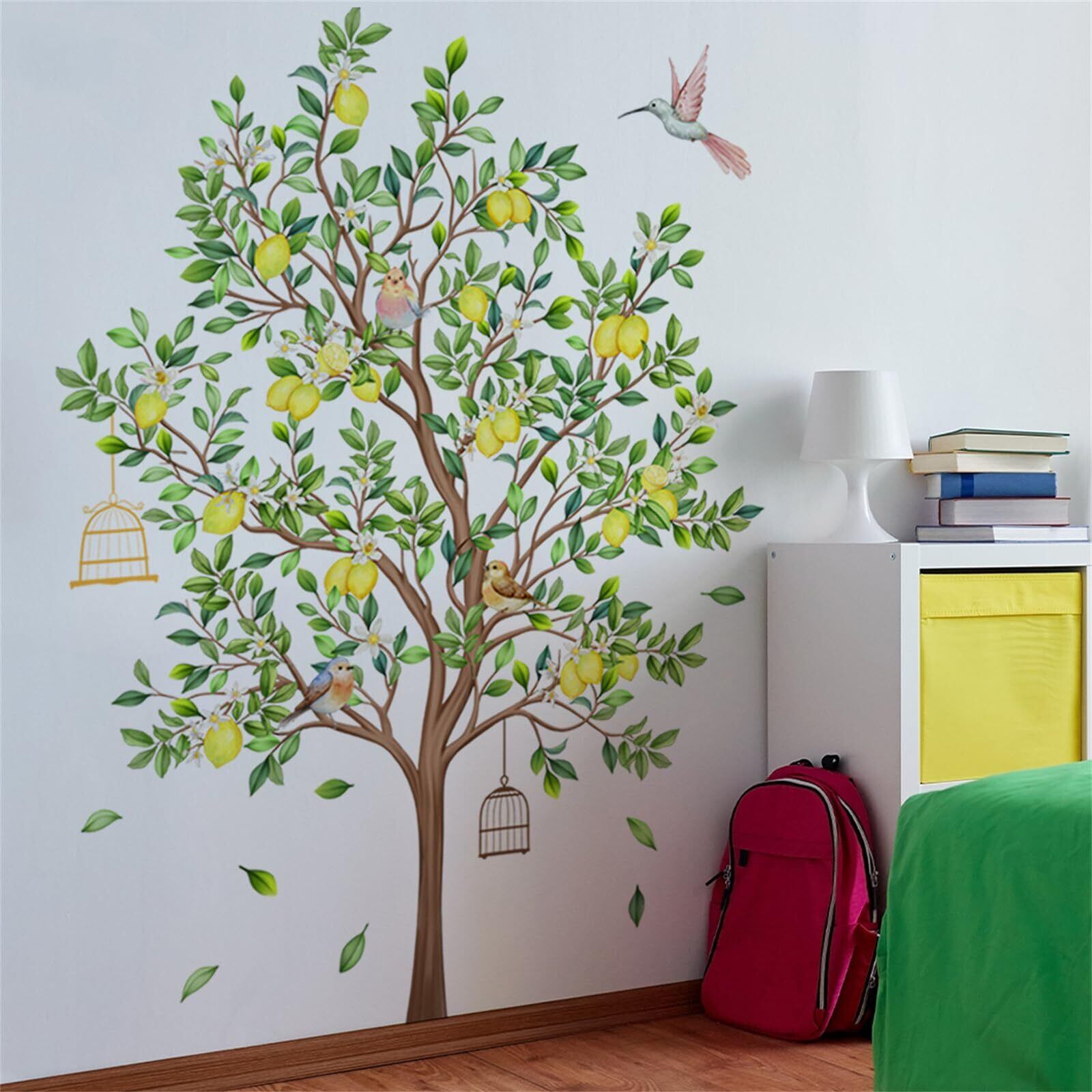 ウォールステッカー 木 レモンツリー おしゃれ 北欧 植物 壁ウォールステッカー 緑 観葉植物 ウォールシール 鳥 鳥籠 景色 はがせる ウォールすてっかー 子供部屋 男の子 女の子 寝室 DIY 壁 シール room wall sticker decoration