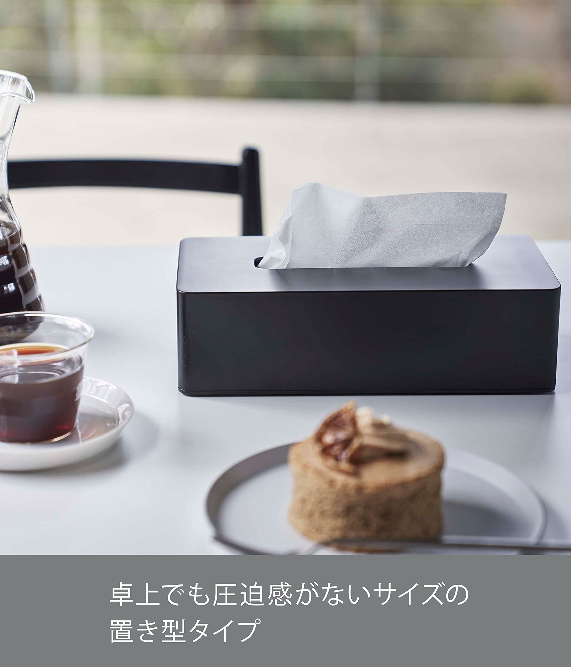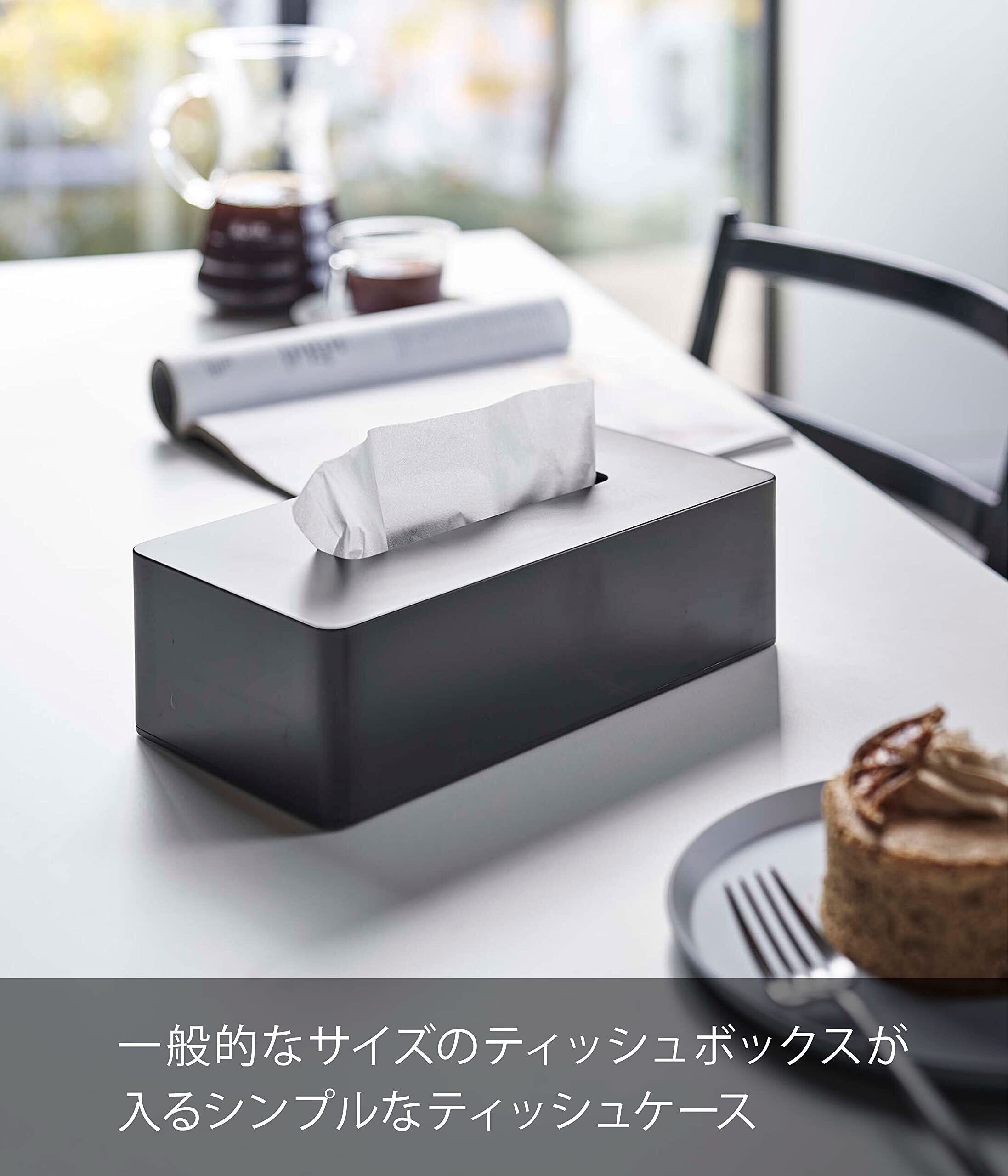 山崎実業(Yamazaki) ティッシュケース レギュラーサイズ ブラック 約W26×D13×H7.5cm タワー tower パッケージを隠して収納 ティッシュカバー 5584