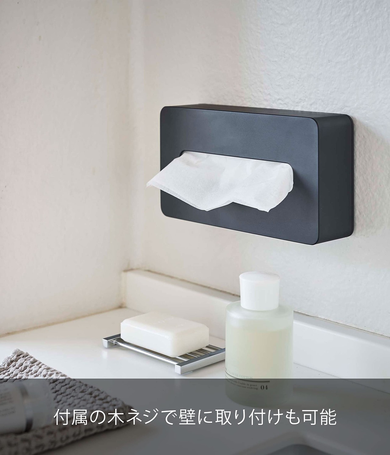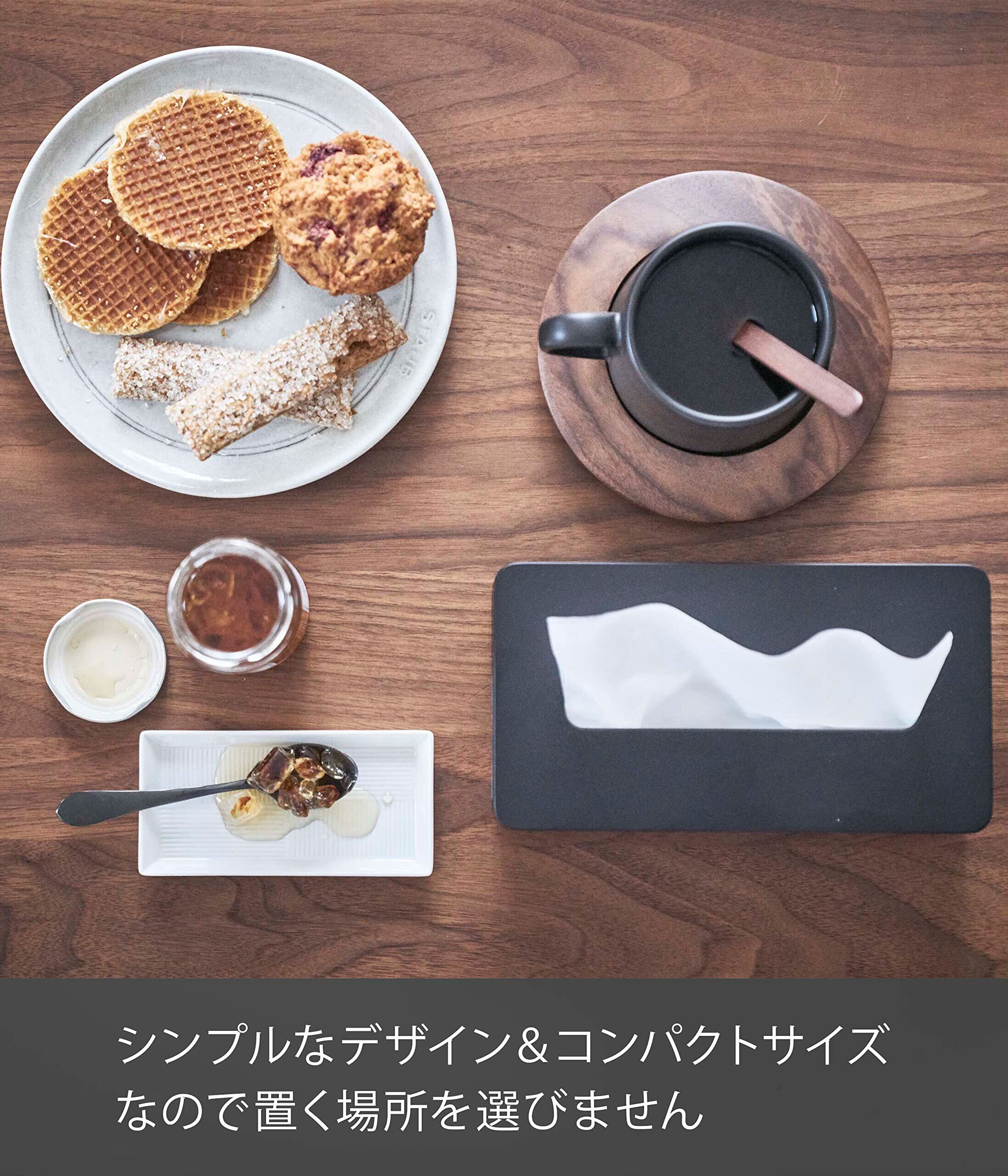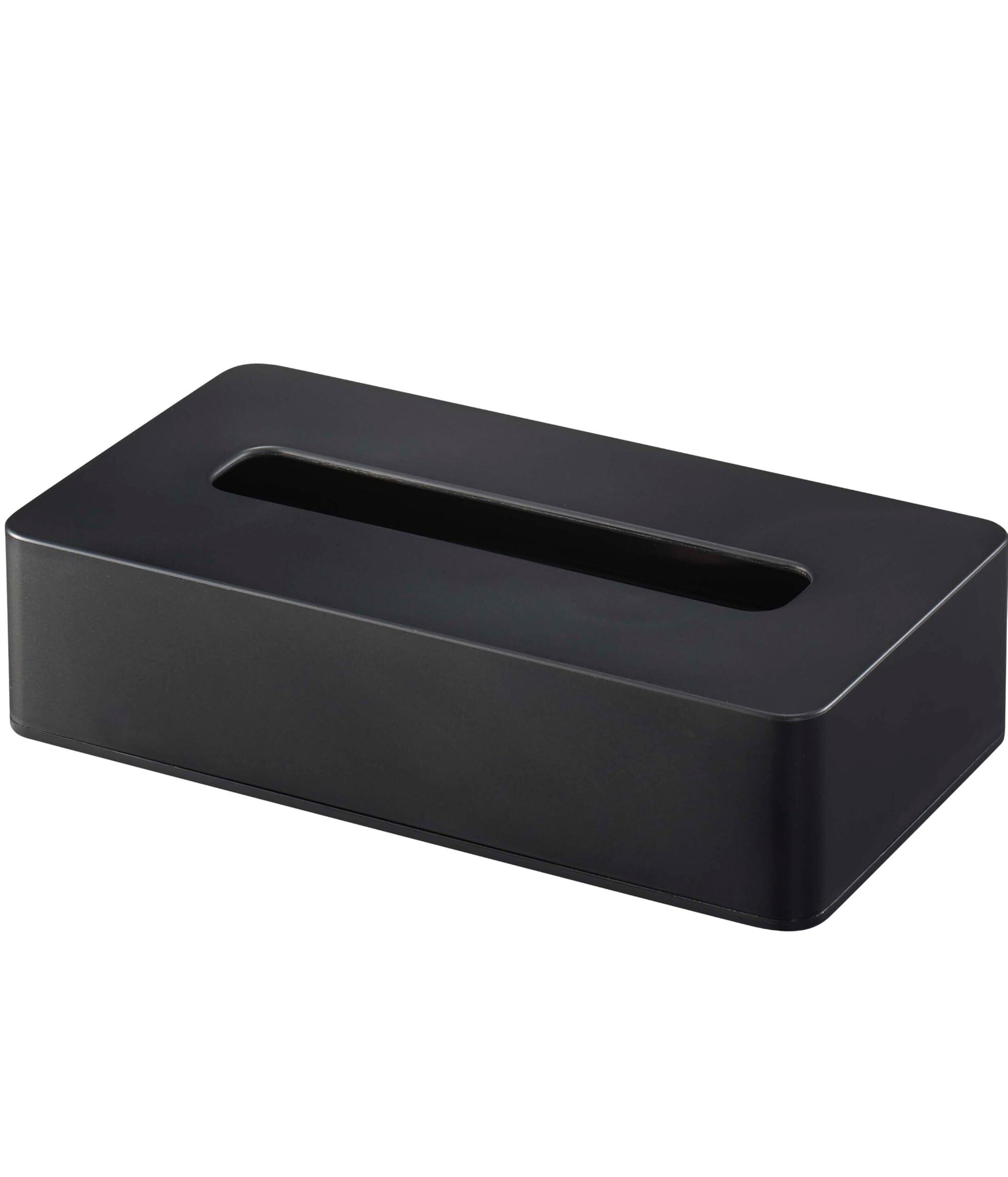 山崎実業(Yamazaki) 長方形 コンパクトティッシュケース ブラック タワー ソフトパックティッシュ専用 壁面収納可 5093