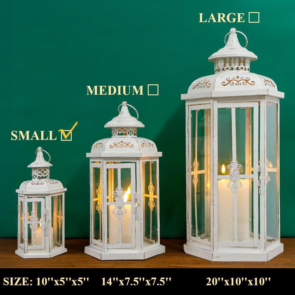 JHY DESIGN キャンドルホルダー 高さ25cm アンティーク キャンドルランタン おしゃれ 間接照明 蝋燭立て ロウソク ランタン インテリア 庭園 部屋 オフィス バーなど屋外屋内 装飾 (白