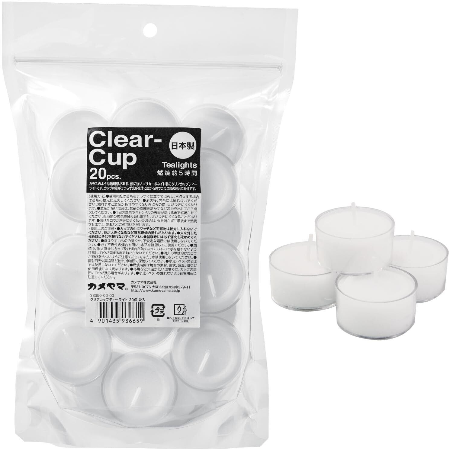 【数量限定】カメヤマ クリアカップティーライト 20個袋入り ローソク キャンドル 約5時間