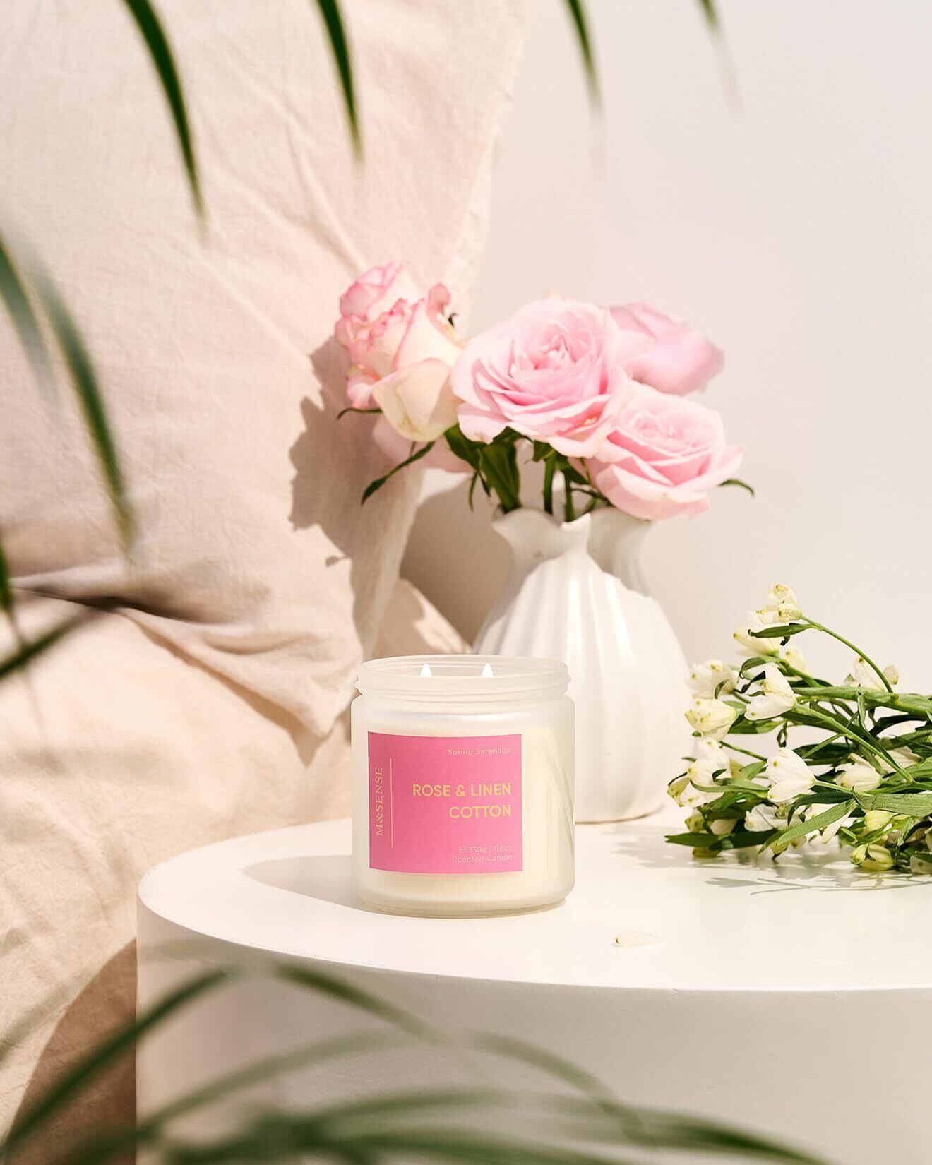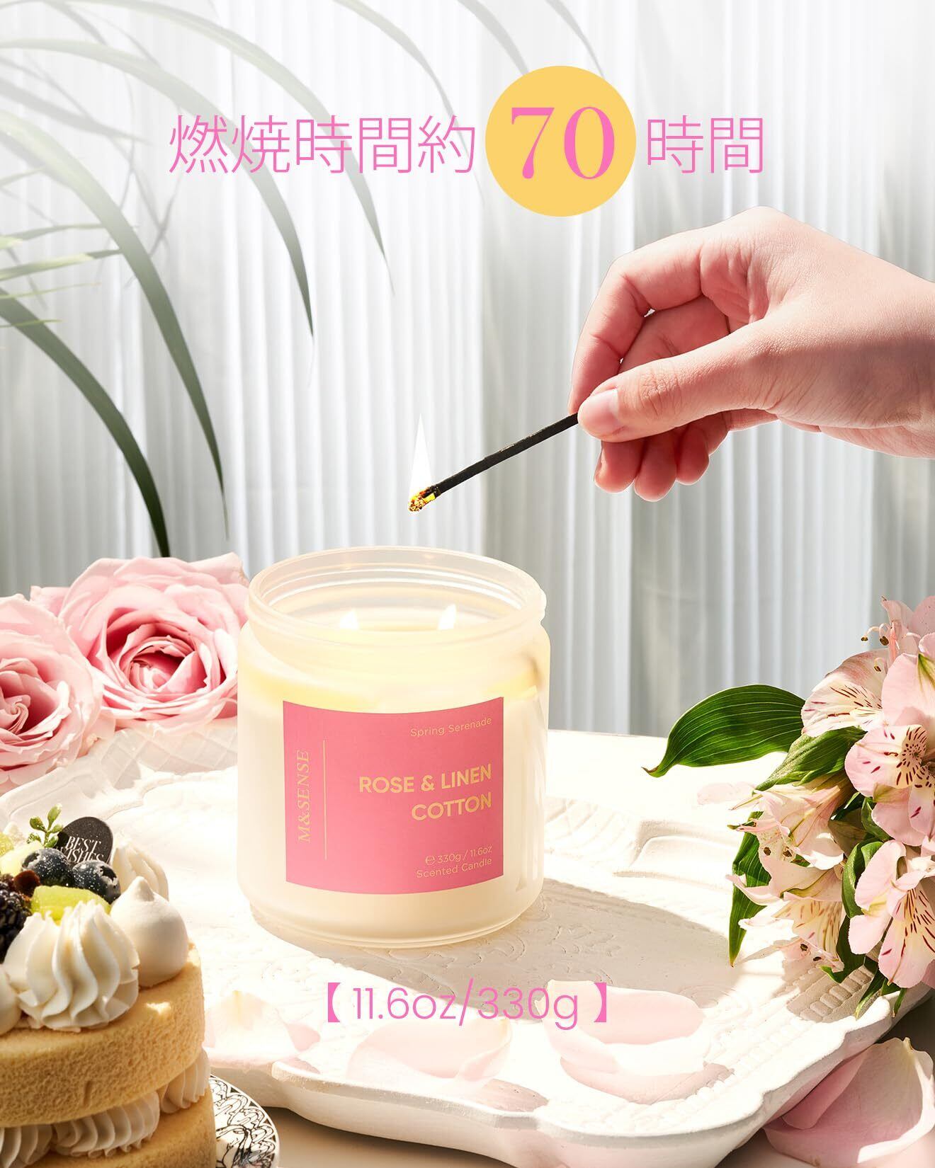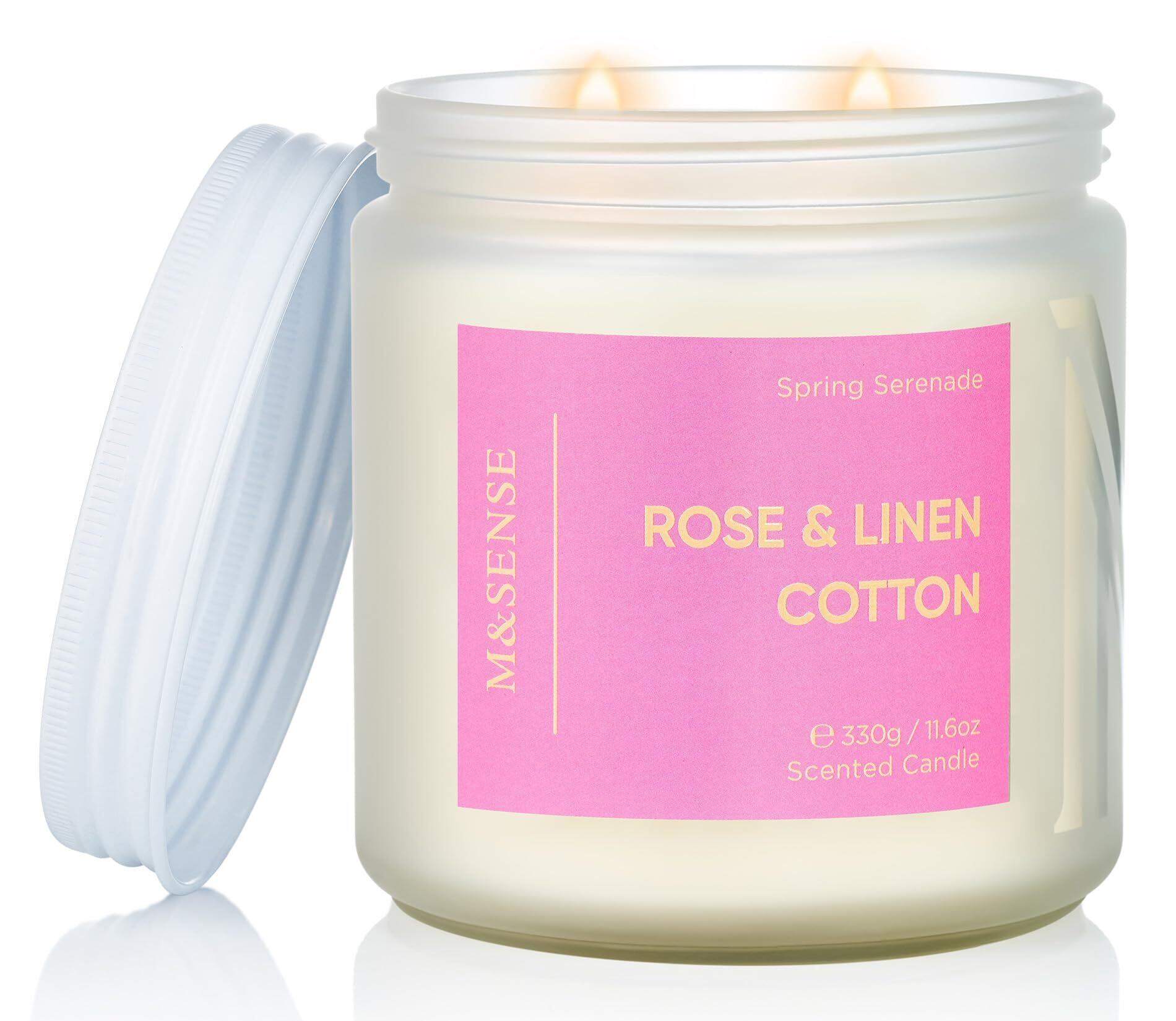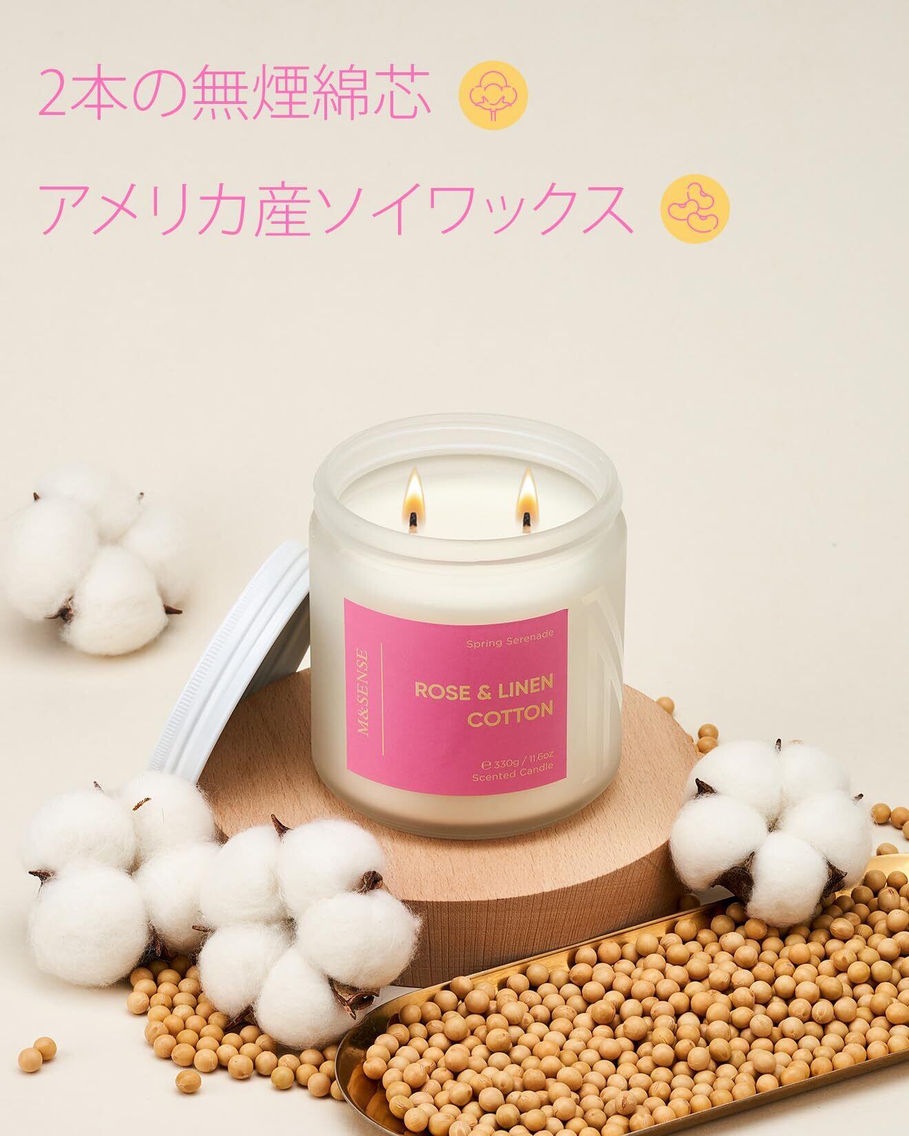 M&SENSE アロマキャンドル キャンドル 大型 ローズの香り 330g 燃焼時間70時間 2本の芯 ソイワックス ジャーキャンドル ホワイトデー バレンタイン 母の日 バレンタイン リラックスギフト プレゼント