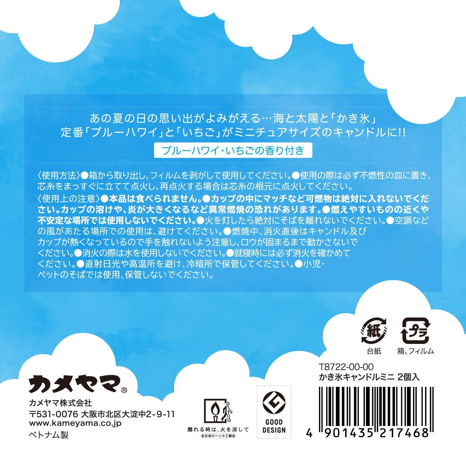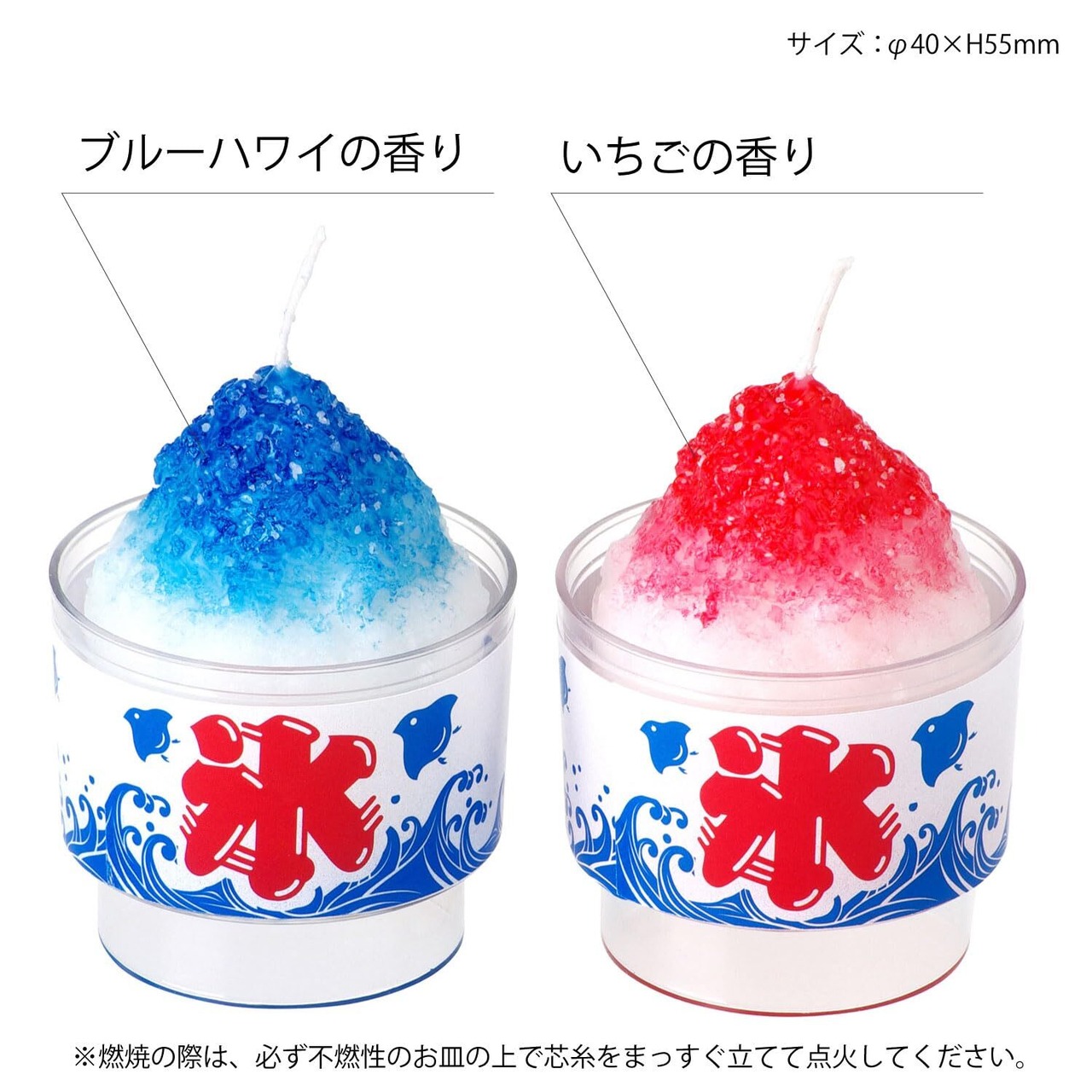 ●高さ55mmのかわいいサイズで、ブルーハワイの香りといちごの香り付き。※必ず不燃性のお皿の上で燃焼させてください。