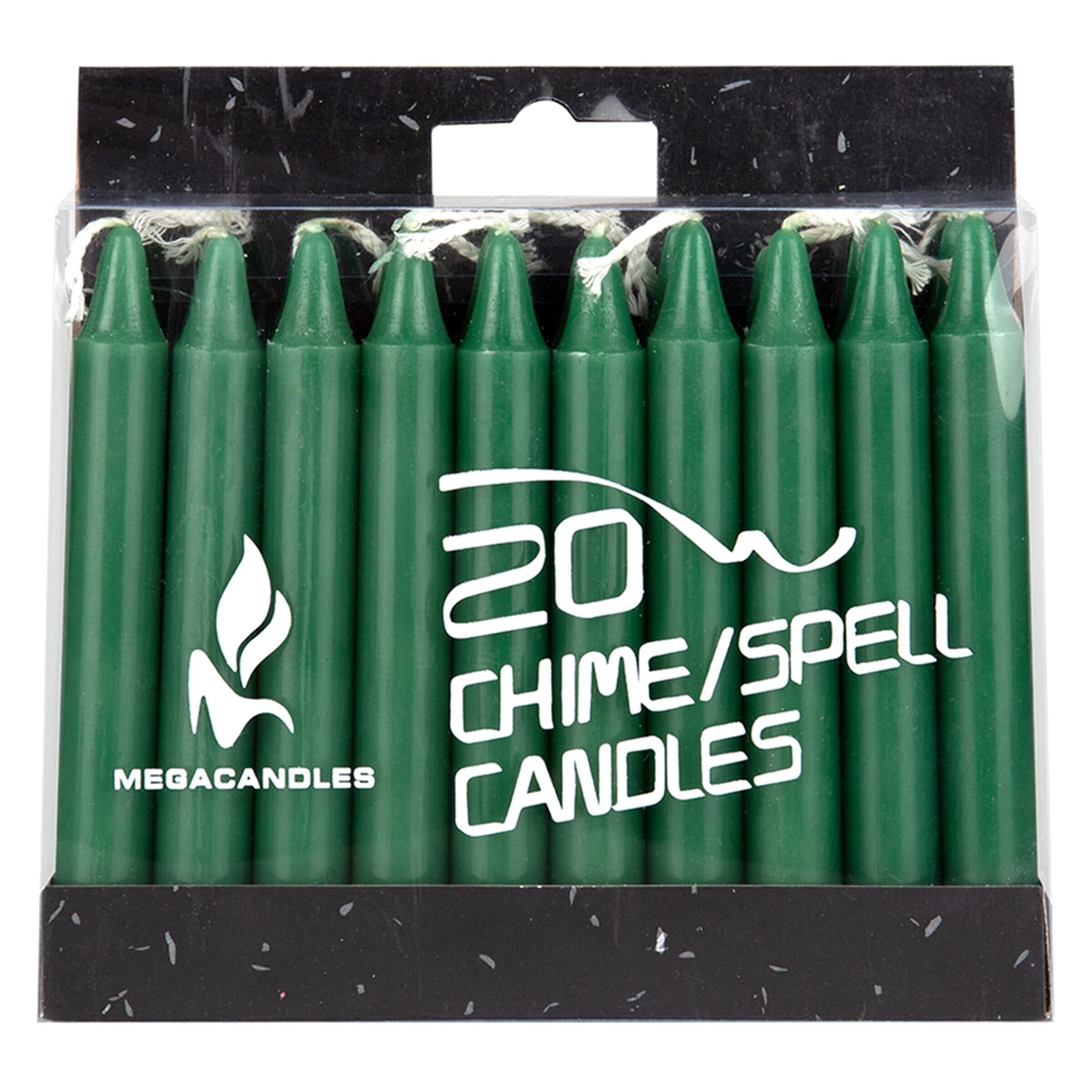 Mega Candles - Unscented 10cm Mini Chime Ritual Spell Taper Candle - Green, Set of 20