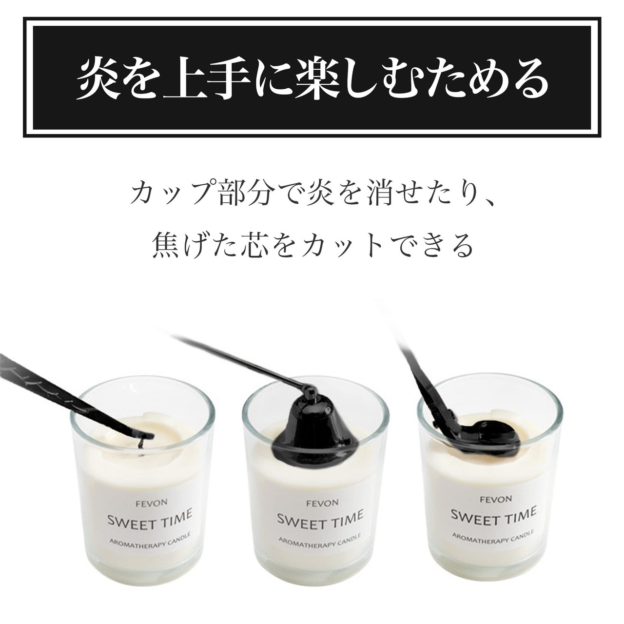 キャンドルを扱うための専用のツール:息を吹きかけてキャンドルの炎を消すと嫌な臭いの煙が出たり、芯が焦げたり、ロウが飛び散ったりして、後始末に手間が掛かることもあります。こちらはキャンドルをトラブルなく、綺麗に扱うための専用ツールセットです。シンプルなデザインですので、インテリア小物としてもピッタリです。