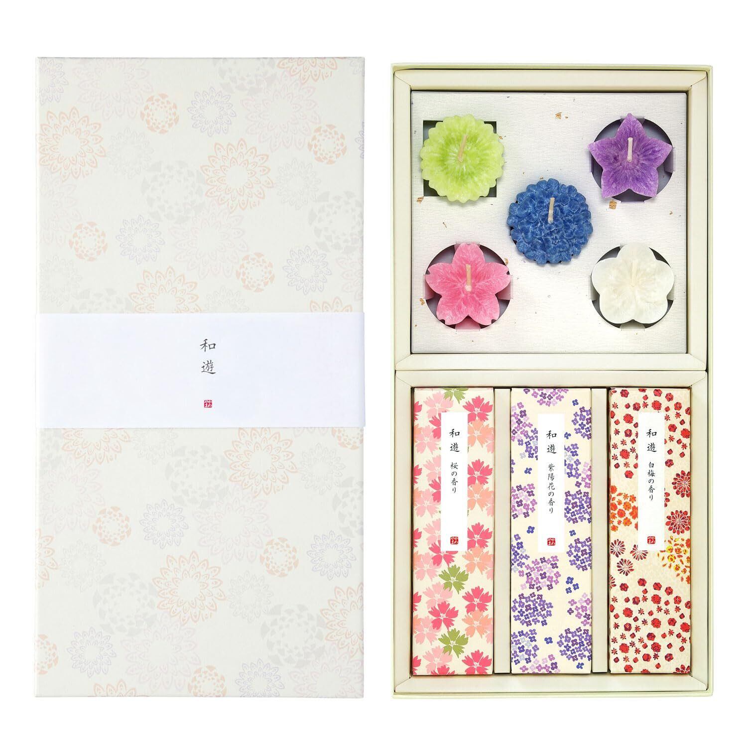 カメヤマ 進物 和遊 花づくしキャンドルセット ローソクとお線香