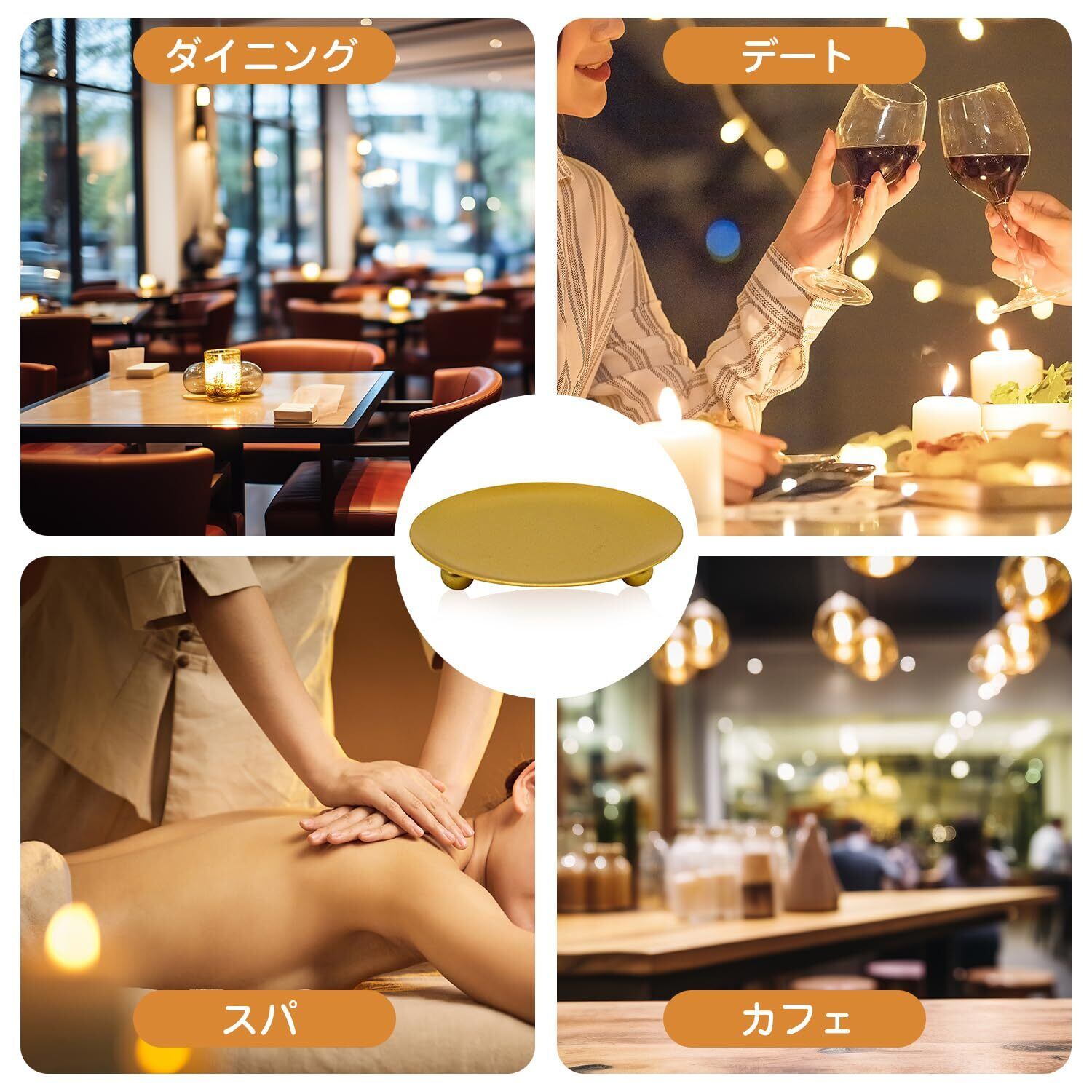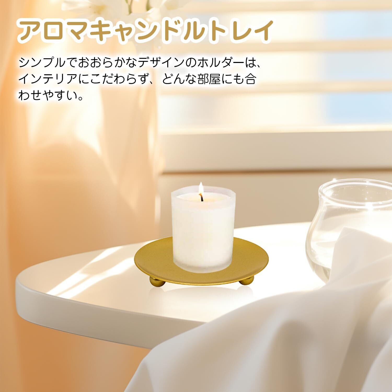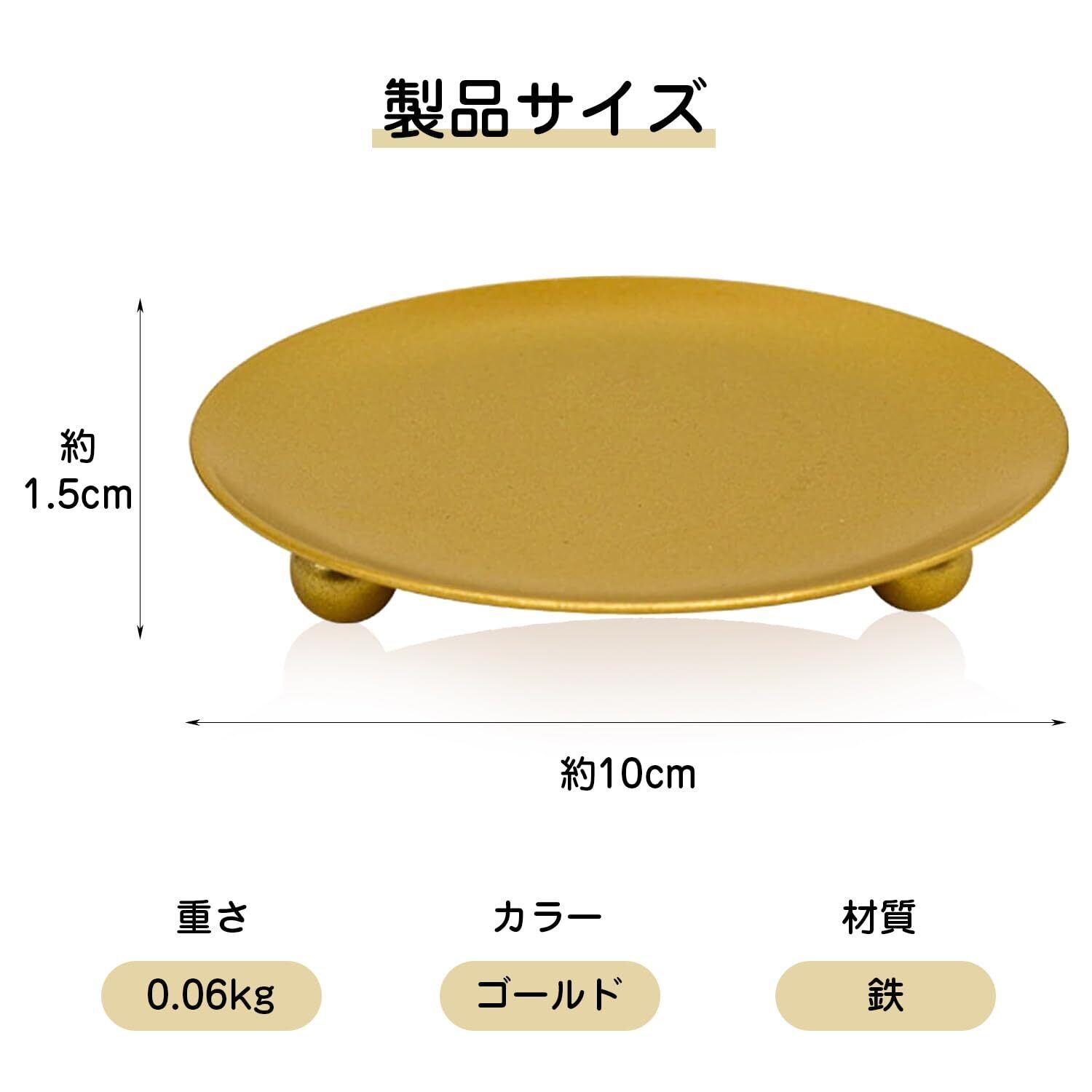 【商品仕様】キャンドル 受け皿サイズ:直径10cm、高さ1.5cm、重さ60g、色:金、数量:1個入り。