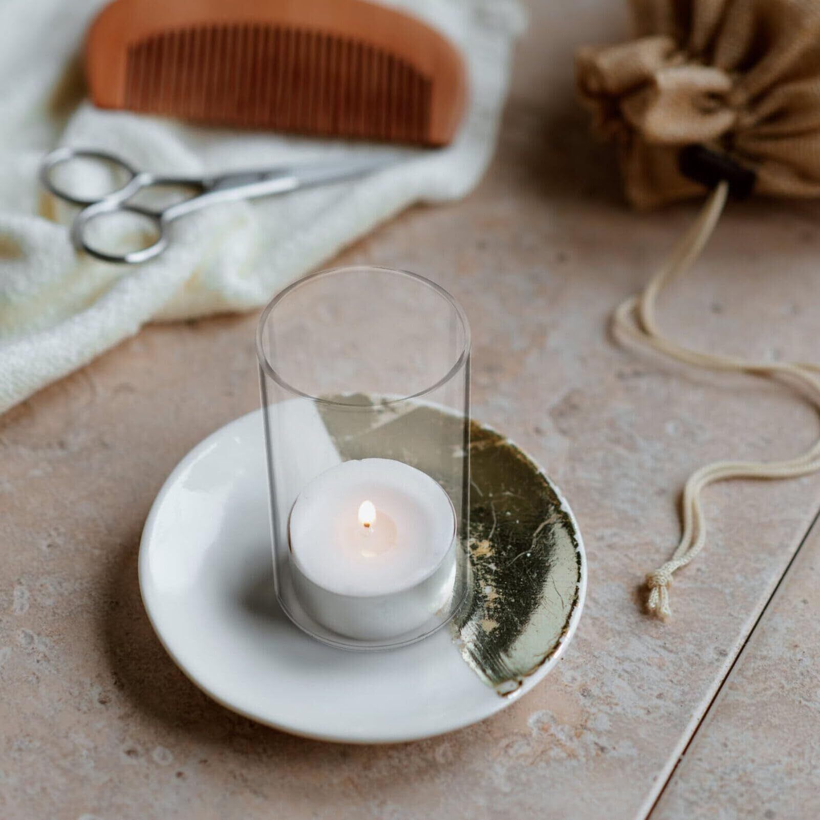 コンパクトで多用途なサイズ:サイズは約10.00×6.00×6.00cm(3.94×2.36×2.36インチ)で、さまざまなキャンドルにフィットします。テーブルや棚のインテリアとしても使いやすく、空間を上品に彩ります。