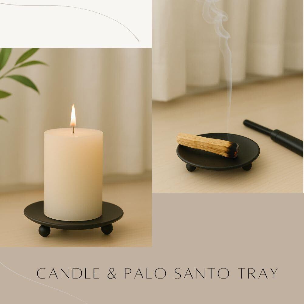 パロサント 受け皿 ラウンドトレー キャンドルトレー 香皿 キャンドル 玉脚付き キャンドルスタンド (ブラック)