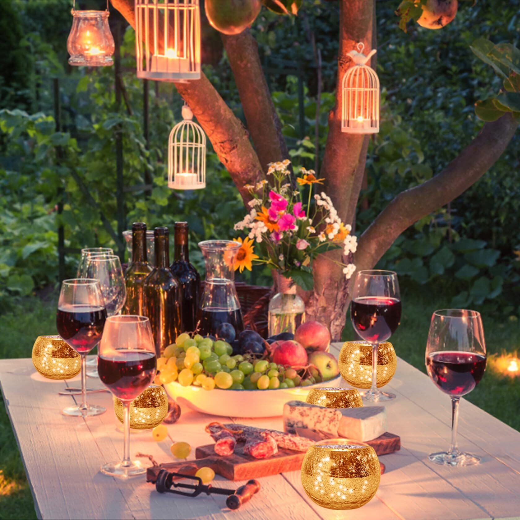 【在庫セール】キャンドルカップ キャンドルホルダー キャンドルスタンド 燭台 キャンドルグラス ボールカップ ステンドグラス 照明/結婚式飾り/誕生日/プレゼント/ホームインテリア/バー/写真小道具/室内/室外 - ゴールド