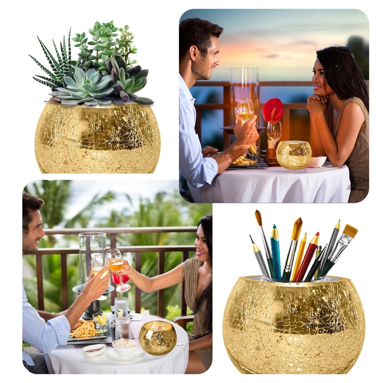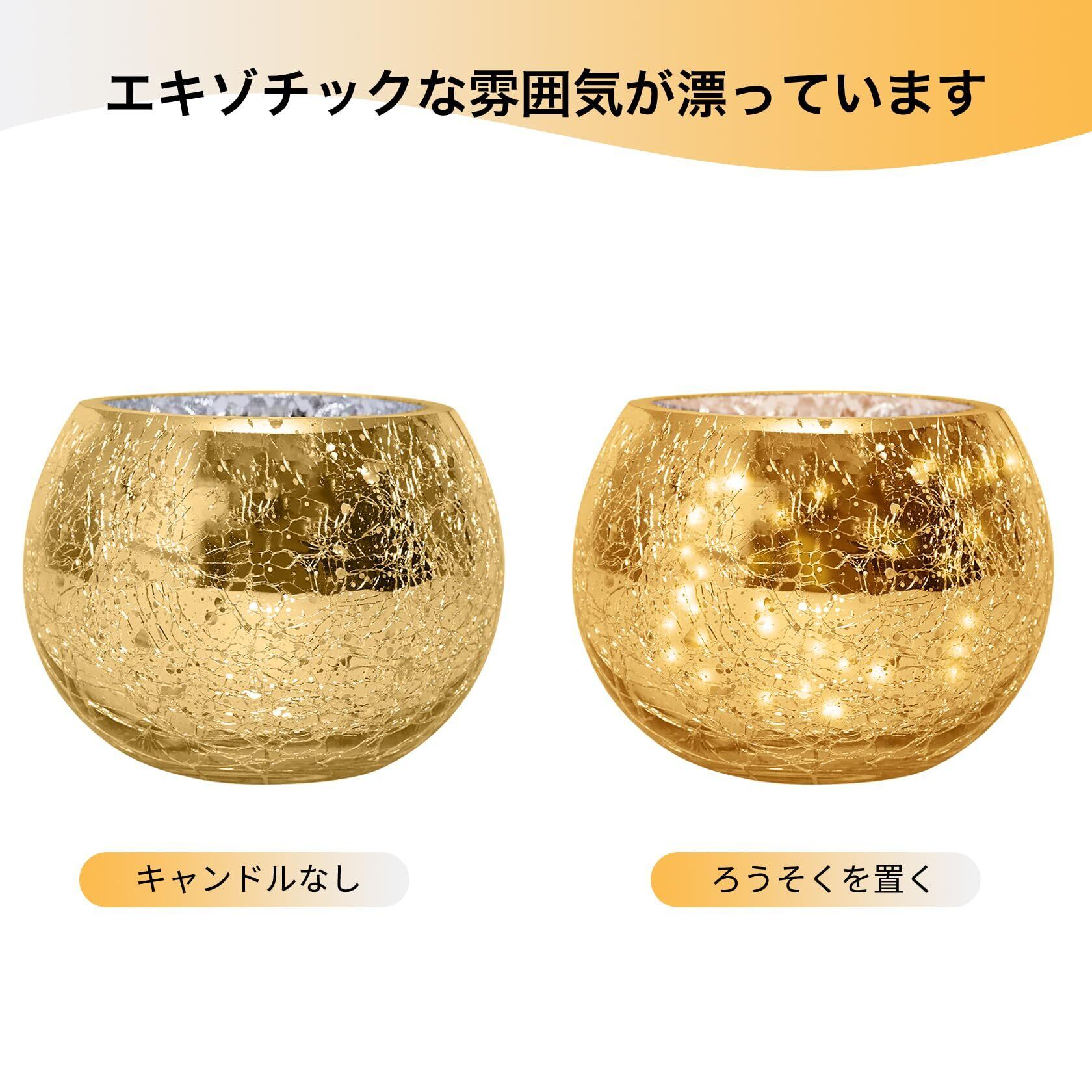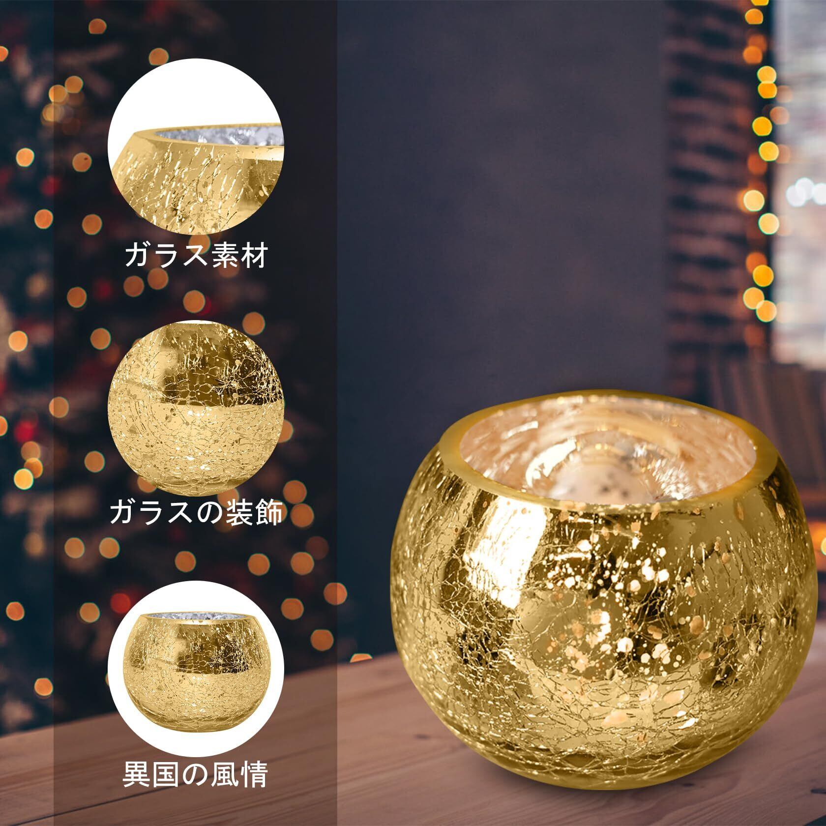 キャンドルカップ キャンドルホルダー キャンドルスタンド 燭台 キャンドルグラス ボールカップ ステンドグラス 照明/結婚式飾り/誕生日/プレゼント/ホームインテリア/バー/写真小道具/室内/室外 - ゴールド