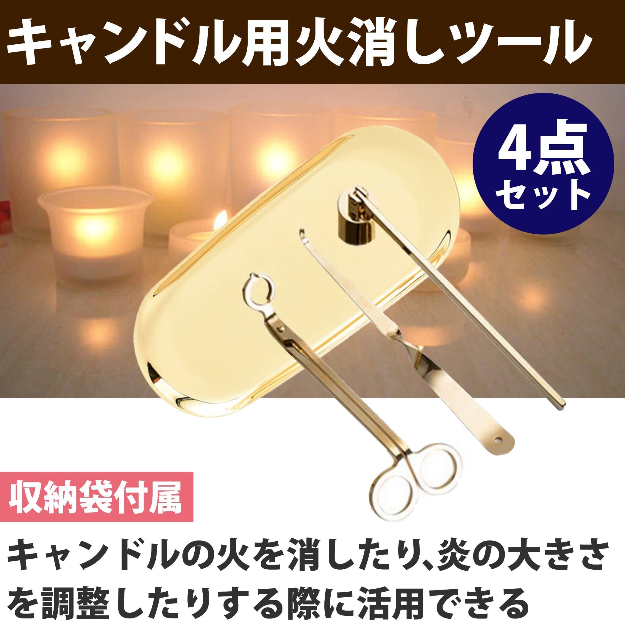 日頃キャンドルを使用している方におすすめ:キャンドルの火を消したり、炎の大きさを調整したりする際にご活用いただける3種のツールとトレイがセットになっております。日頃キャンドルを使用している方におすすめの商品です。
