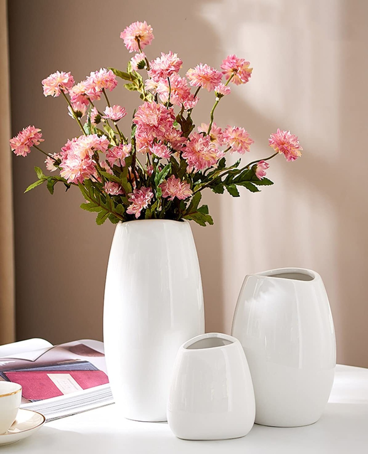 【数量限定】花瓶 白 陶器 花器 フラワーベース ホワイト白い 大 20cm かびん 北欧 セラミック おしゃれ 生け花 インテリア 家の装飾 プレゼント ギフト