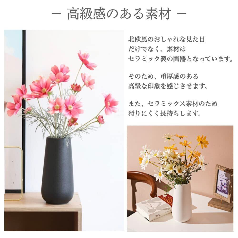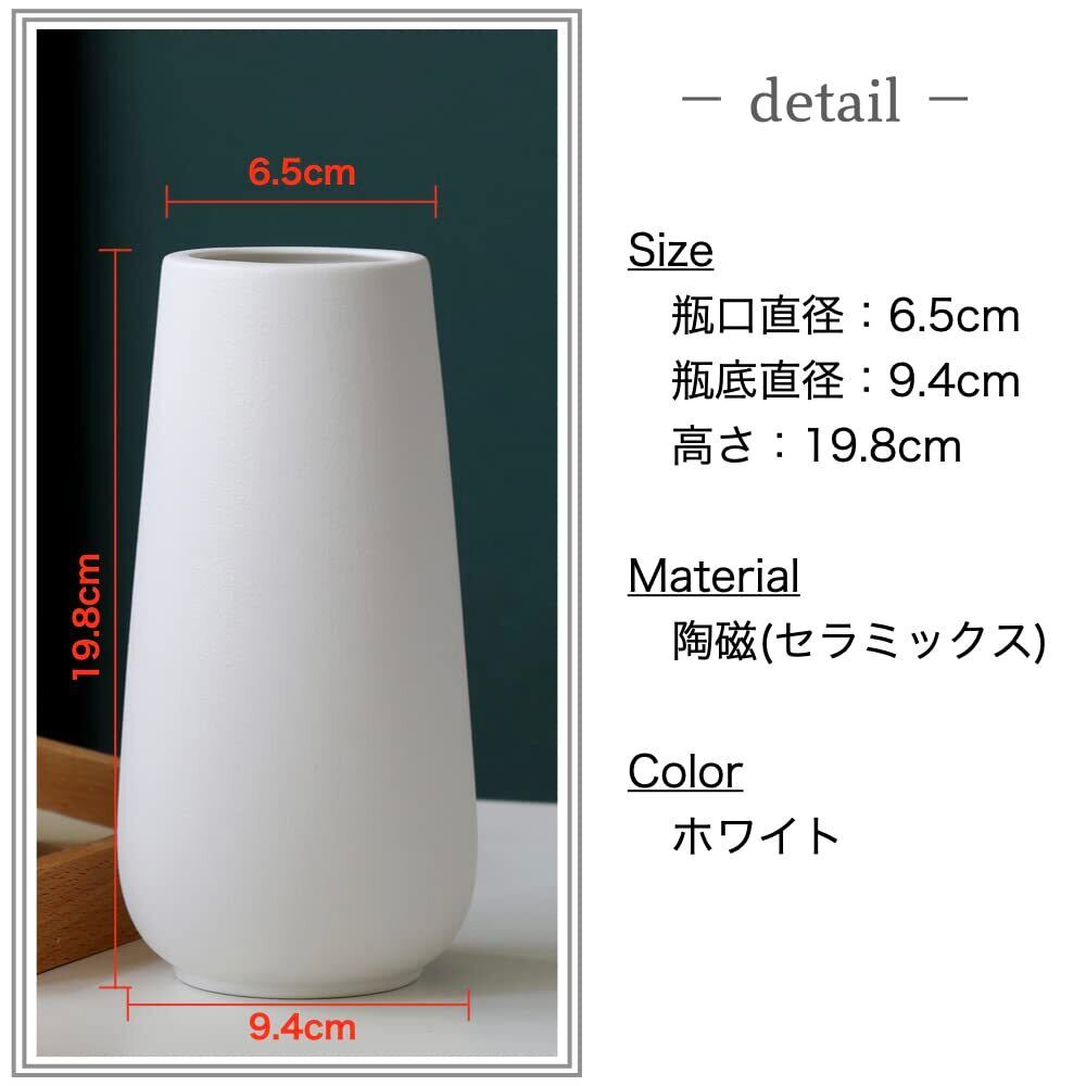 【人気商品】+kuRo 花瓶 フラワーベース 陶器 北欧 おしゃれ 大きい インテリア 花器 生花 ドライフラワー セラミックス (ホワイト, 20cm)