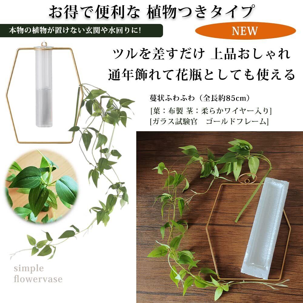 フェイクグリーン:植物つきタイプはシルエットの美しい 藤の葉 蔓の部分はソフトワイヤー入り。 吊り下げ 人口観葉植物 がついているので飾る植物がないときでも使えますし、何か飾りたい植物があれば壁掛け花瓶として利用できます