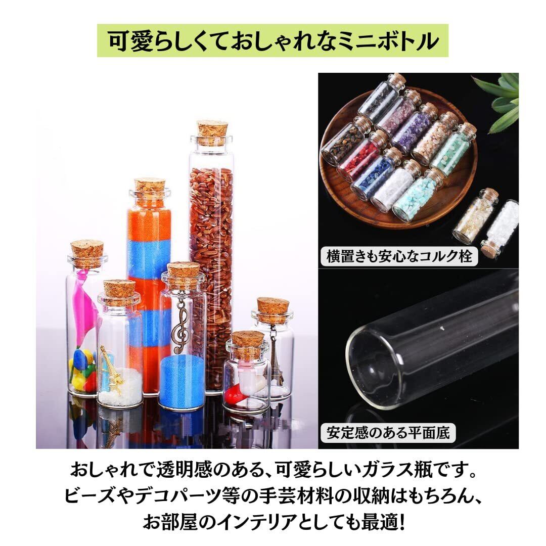 【おしゃれで可愛らしいガラス瓶】高品質のガラスを使用した、コルク栓付きのおしゃれでかわいいミニボトルです。透明感があり中身が良く見えるため、ビーズやレジン・デコパーツ等の手芸材料入れとしてはもちろん、一輪挿し用の花瓶やハーバリウムのディスプレイなど、お部屋のインテリアとしても最適です。安定感のある平面底で縦置きの際も安心!