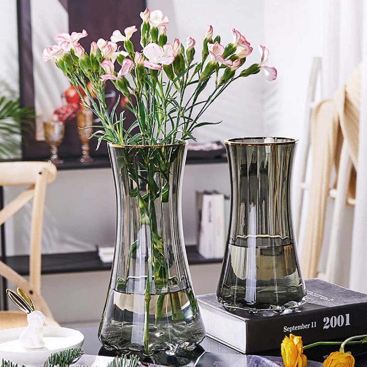 ガラスの花瓶・フラワーベースは花の美しさを引き出してくれます。ベーシック形状でシーンやインテリアを選ばないガラスベース。切花を飾るのに使い勝手の良いサイズ感のため、季節問わずお使いいただけます