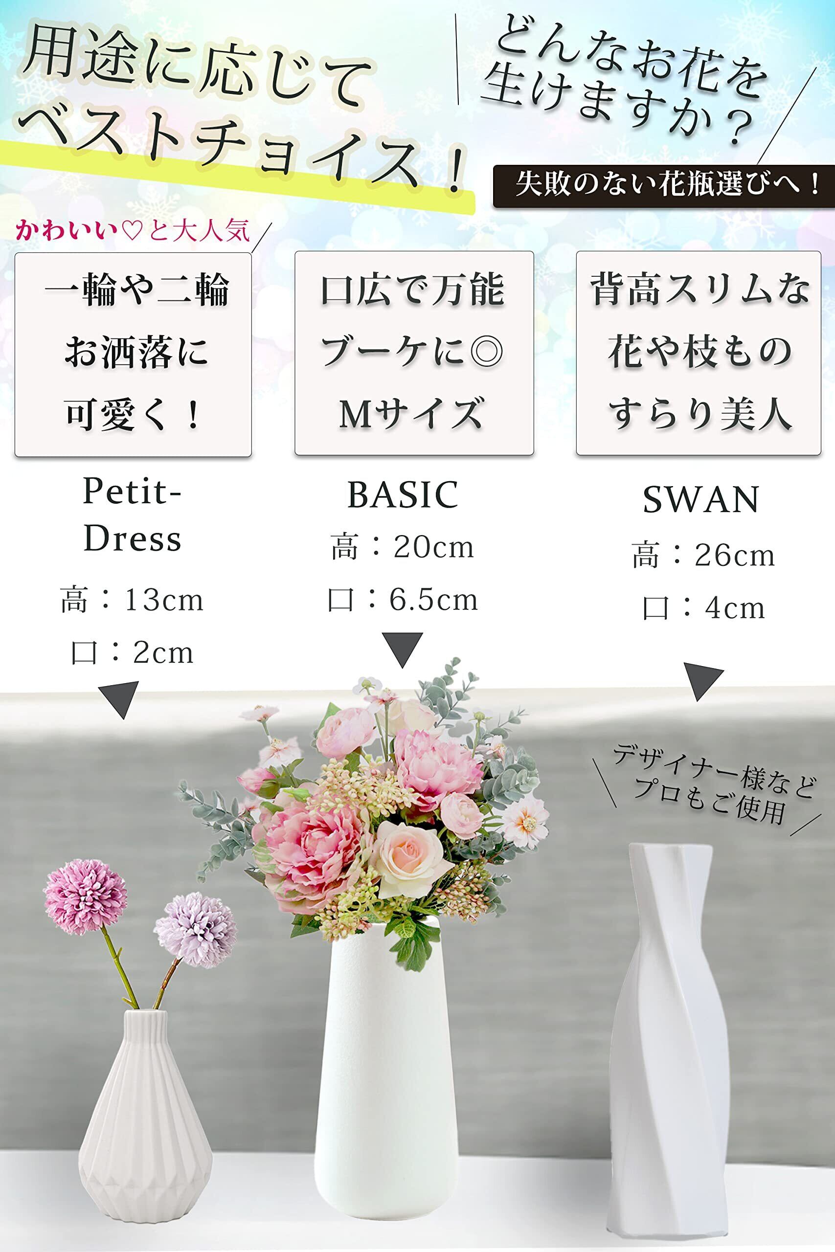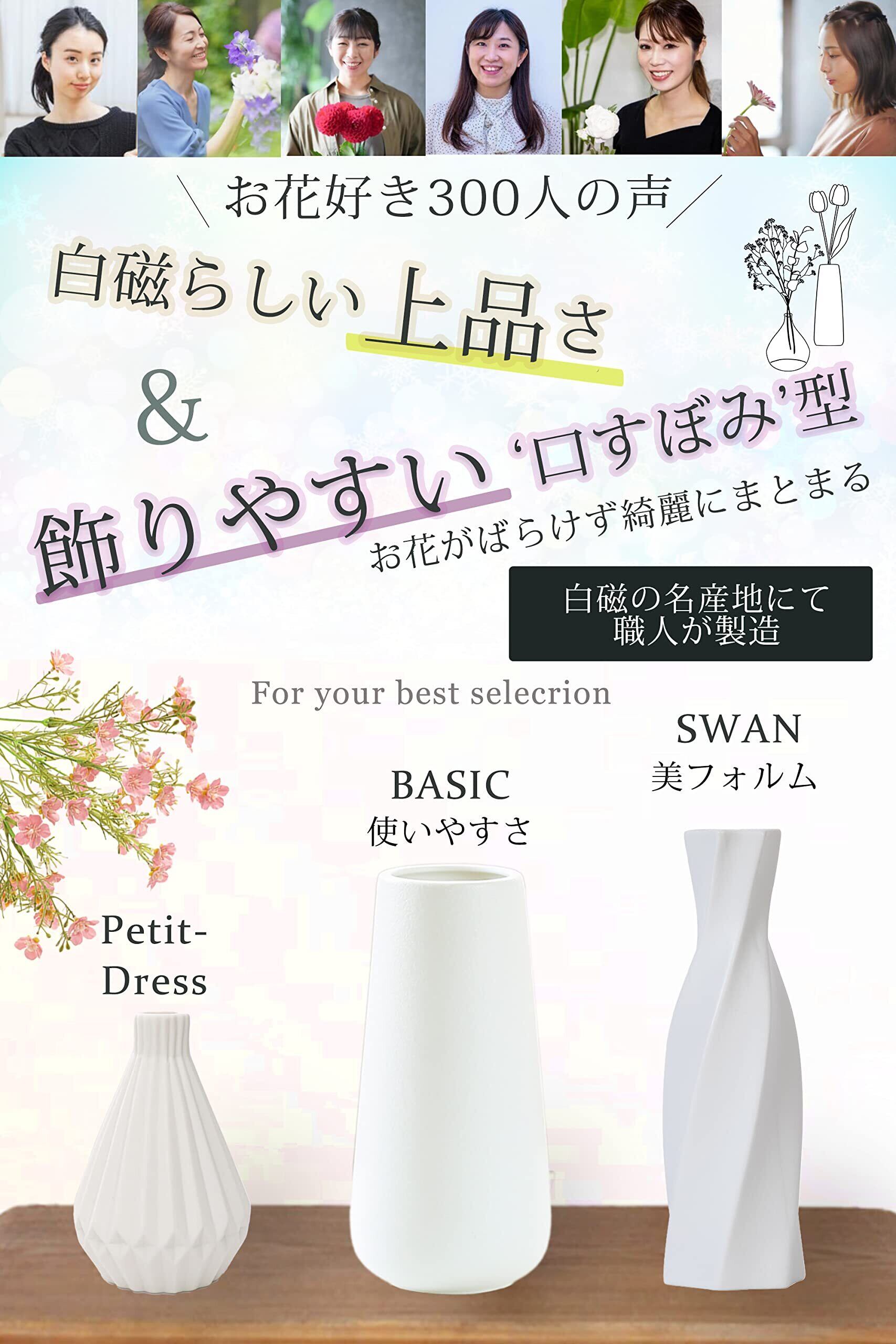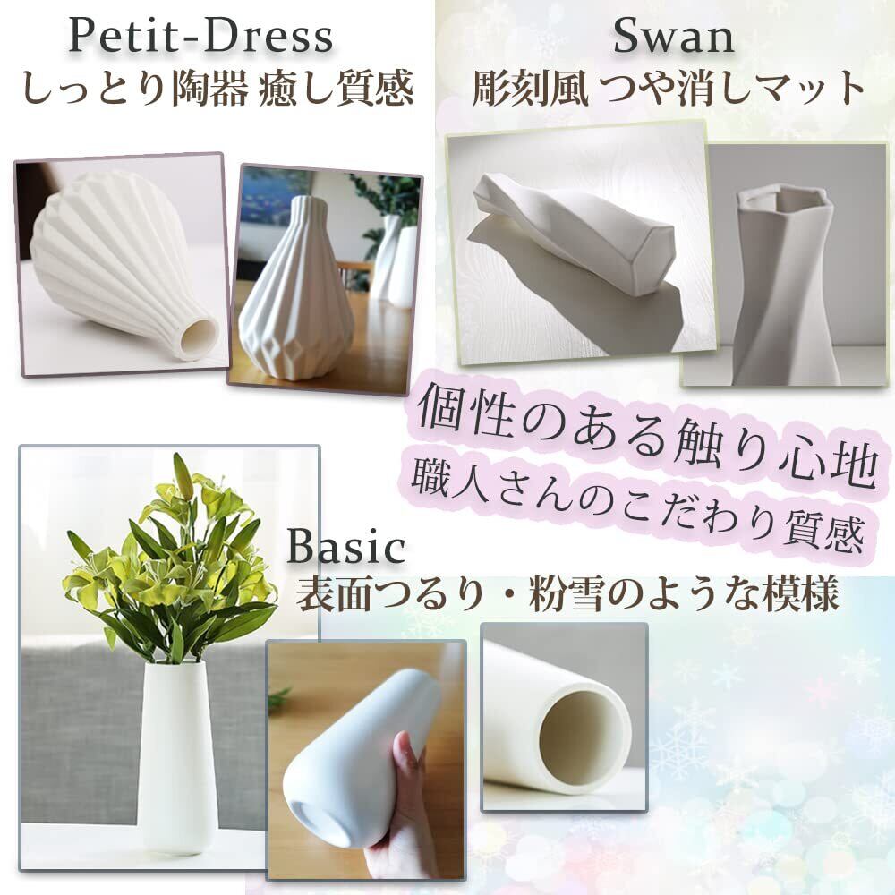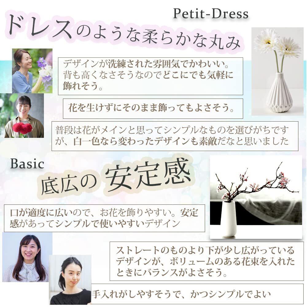 花瓶 陶器 白 黒 おしゃれ 20cm フラワーベース (白, Basic)