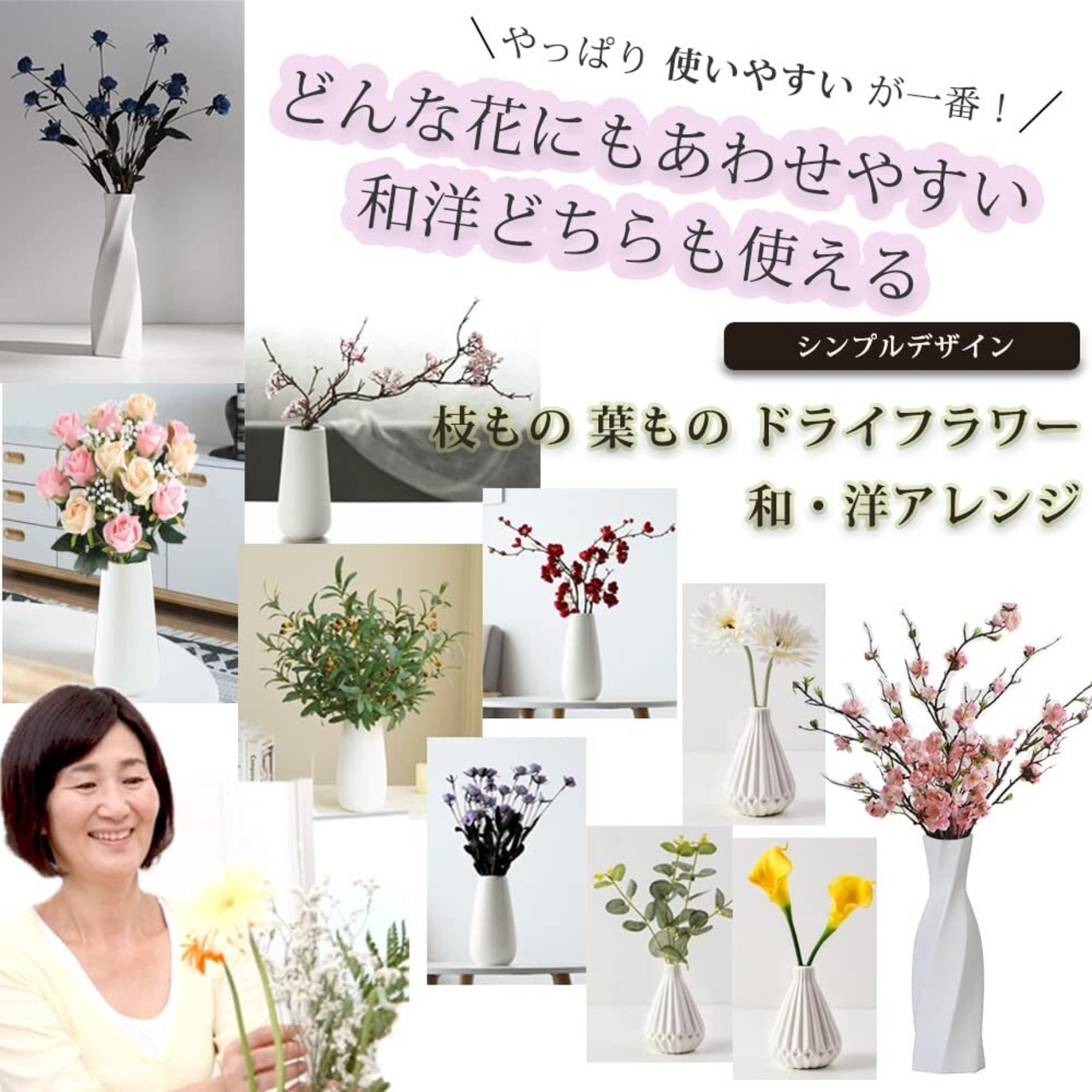 【特価セール】花瓶 陶器 白 黒 おしゃれ 20cm フラワーベース (白, Basic)