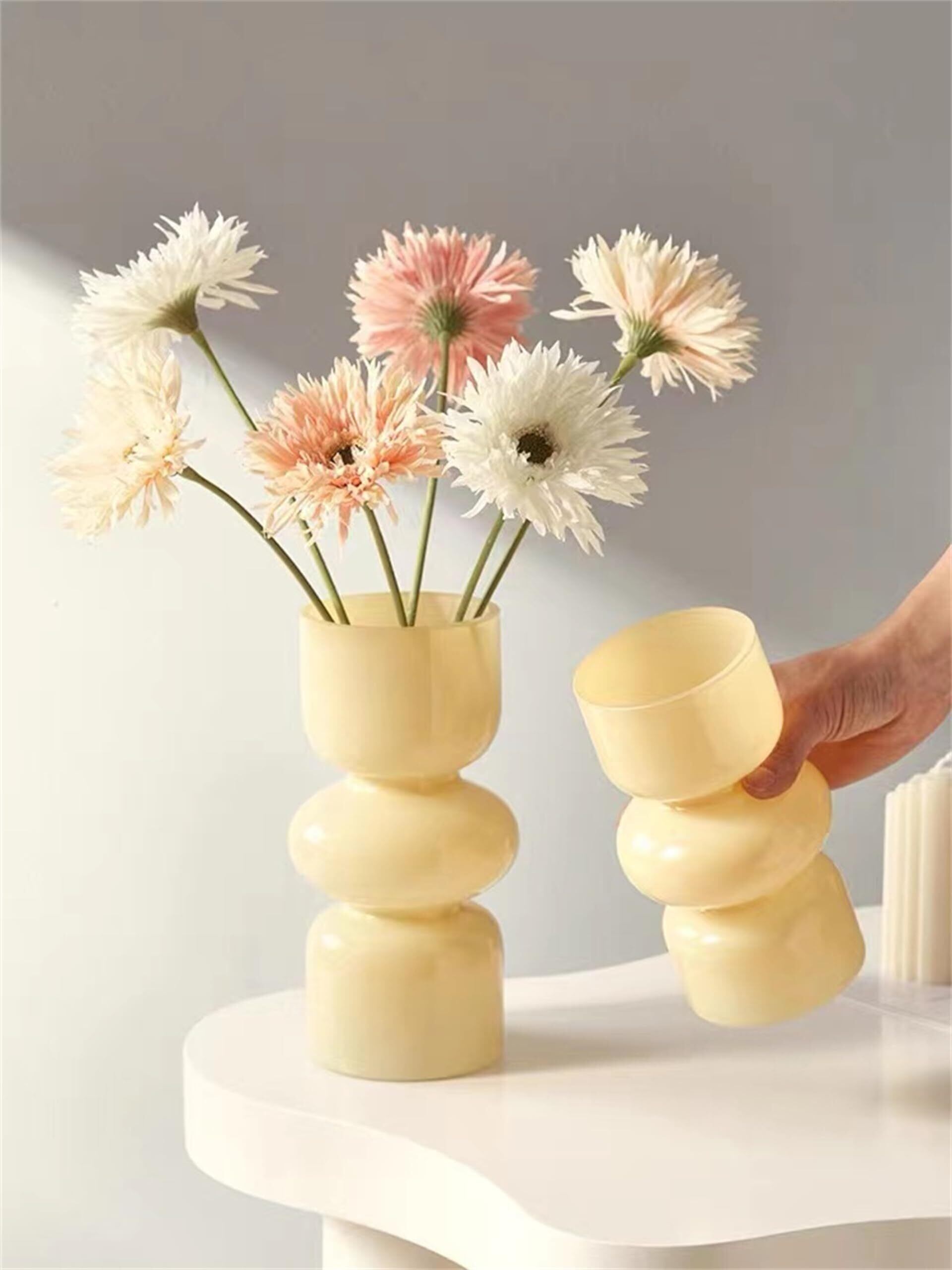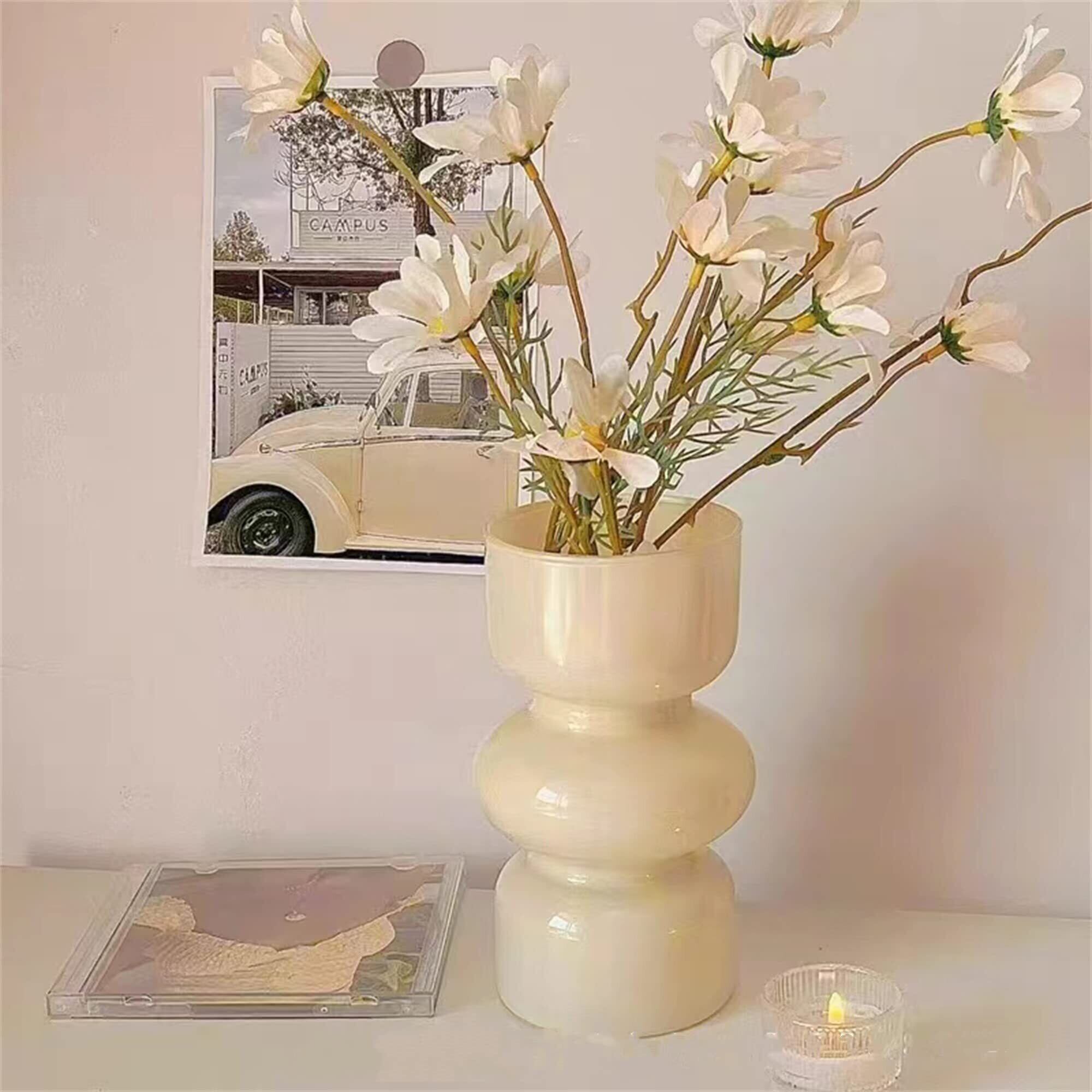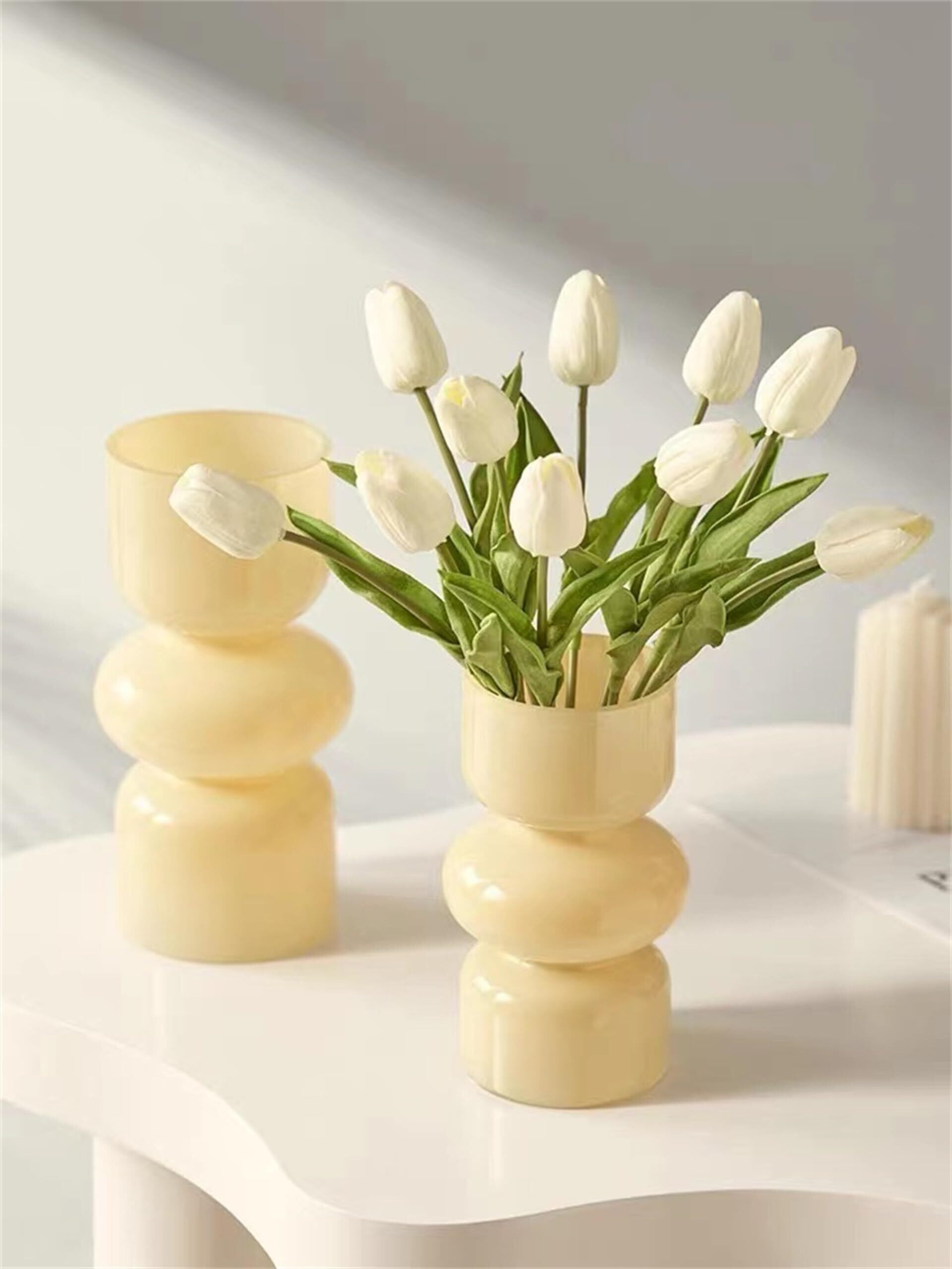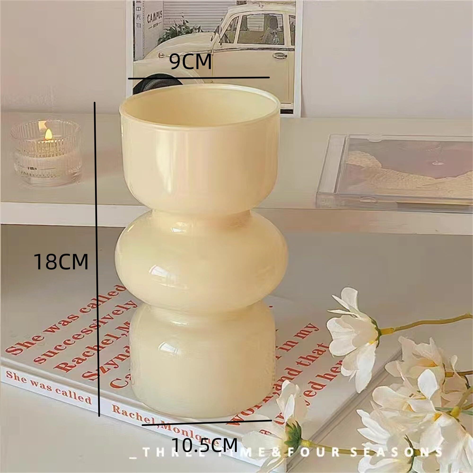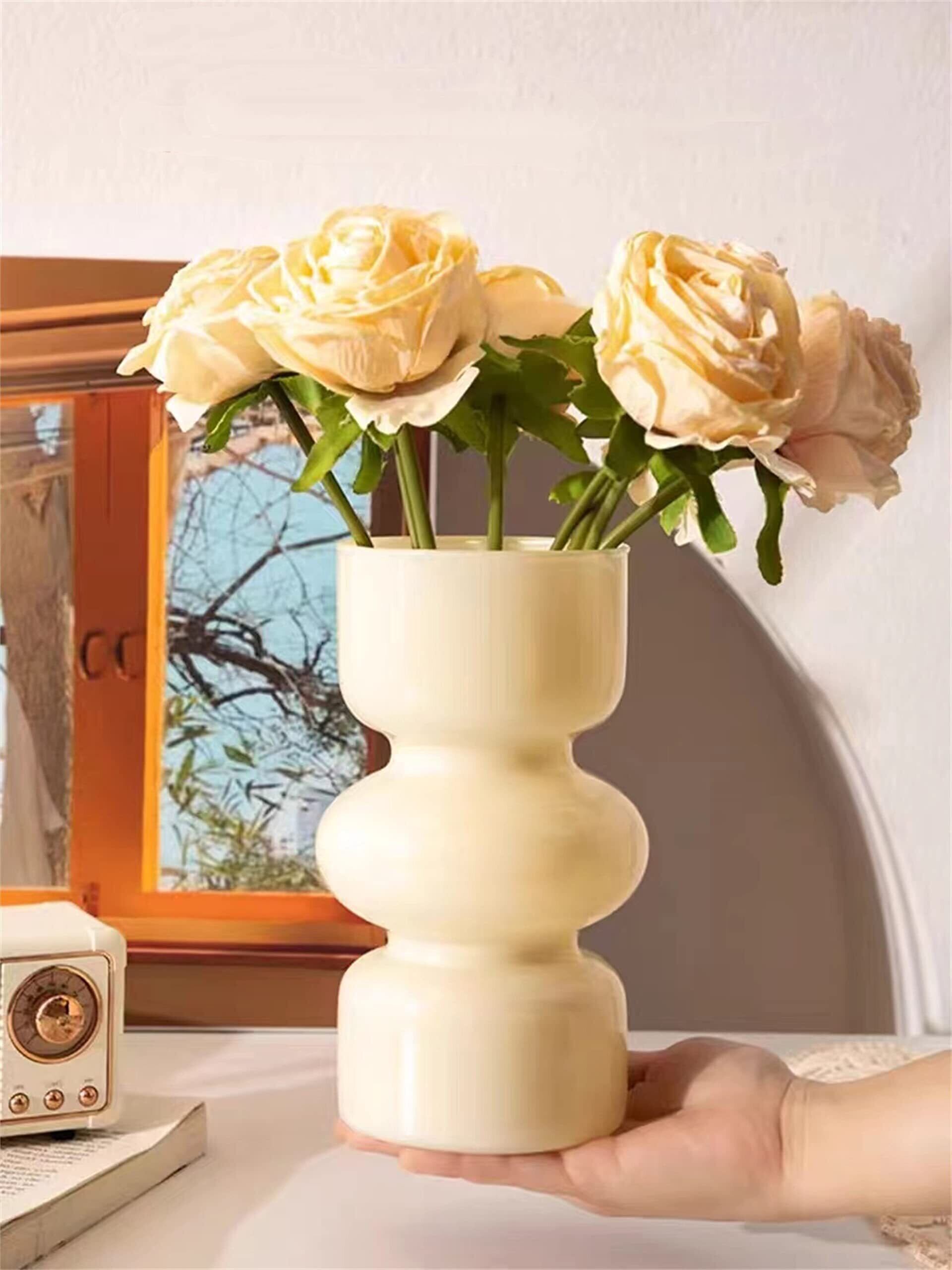 【新着商品】JSPYFITS 花瓶 ガラス 花びん 割れない 一輪挿し おしゃれ がびん ガラ スバブルベース 容器 吹きガラス 高さ18cm 水栽培 生け花 造花 花束 透明 水栽培 花器 インテリア飾り 置物 贈り物 玄関、書斎、部屋、窓辺に(米色)