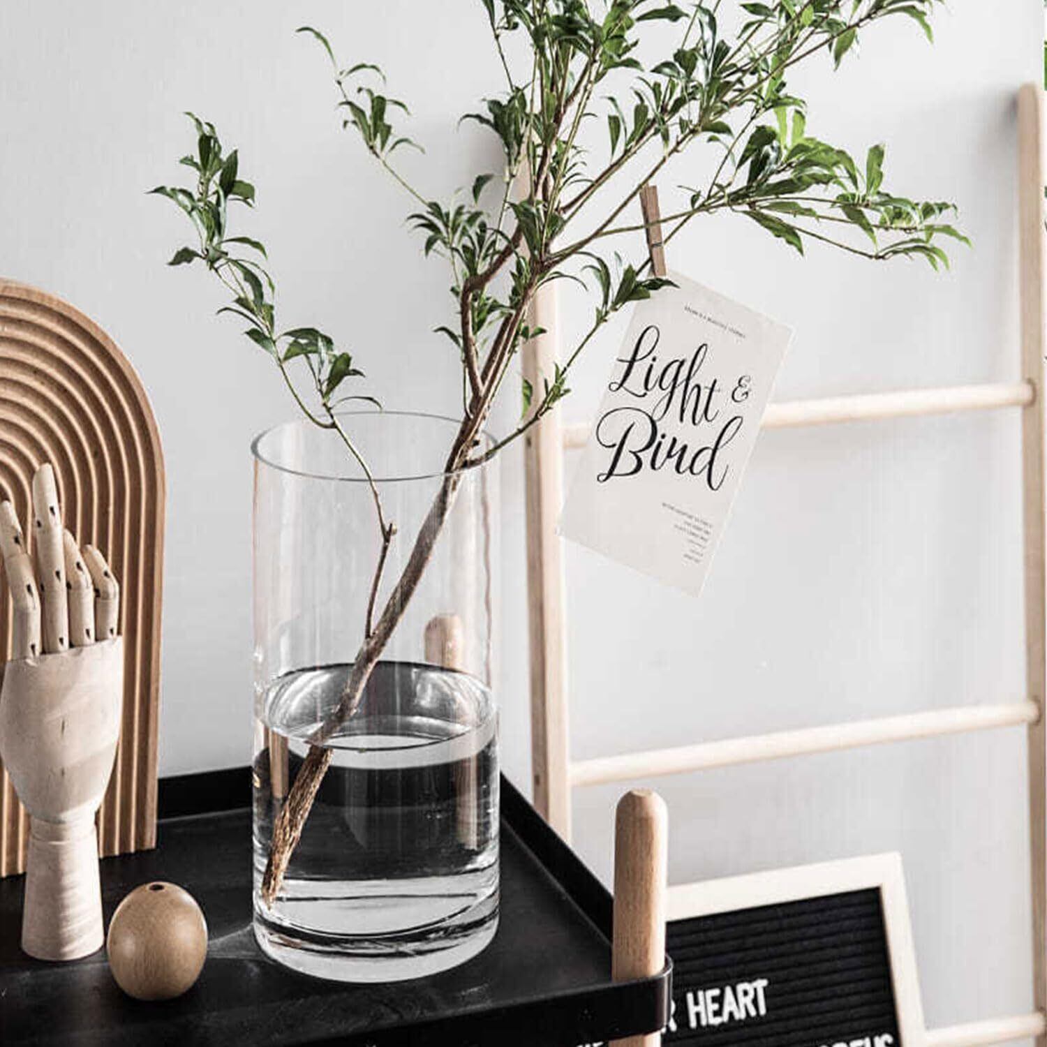 大きいサイズ: 高さ:35cm 直径:12cm このサイズのシリンダーベースは、60〜80cmのブーケ、つる性の花、茎、葉、枝に適しています。例えば、桜、バラ、ユリなどは花瓶にちょうど収まる長さです。