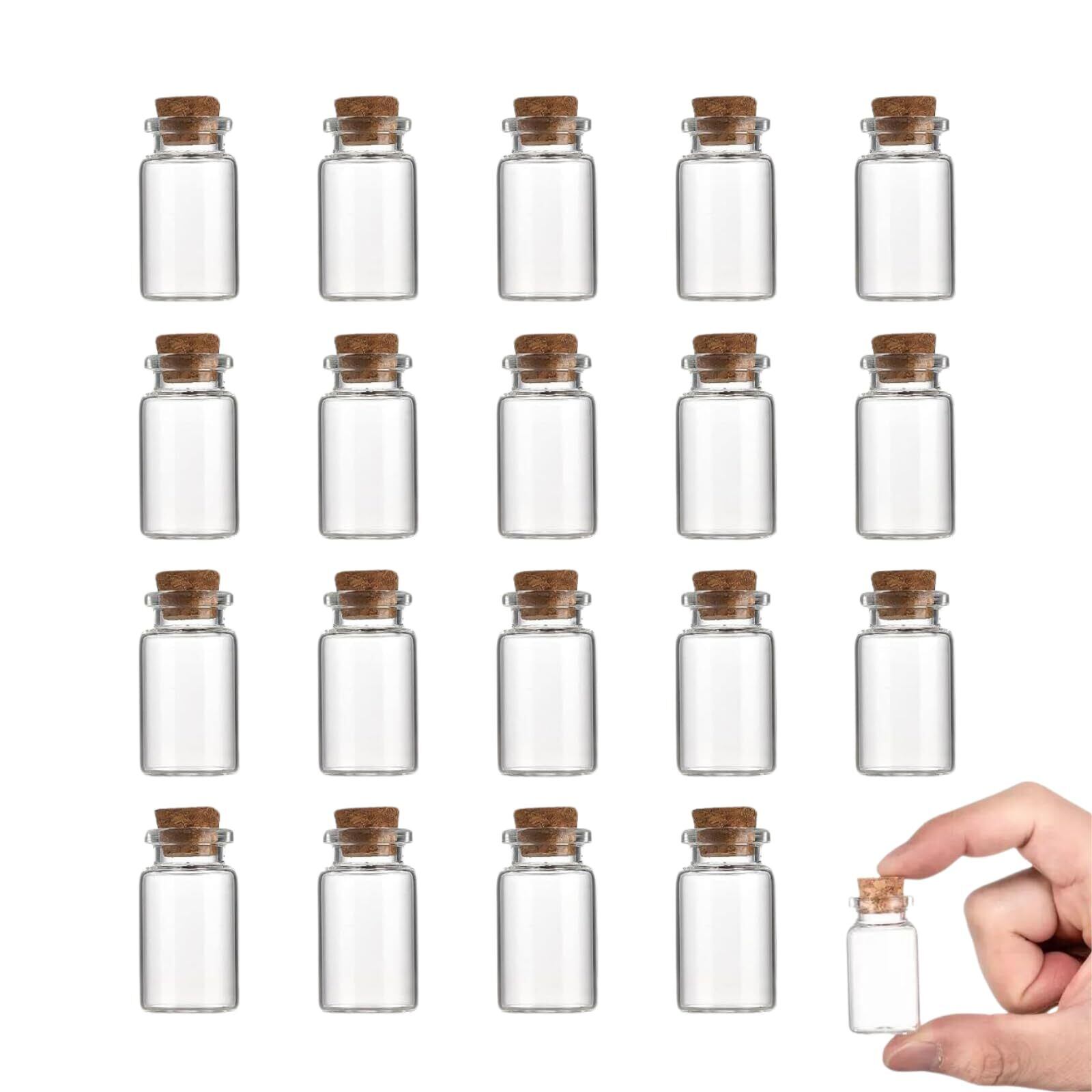 HAPPY SUGAR ガラス 小瓶 コルク栓付 透明 ミニボトル 標本 ボトル 透明ボトル スパイスボトル ミニチュア 小物入れ 装飾 20個セット 8ml