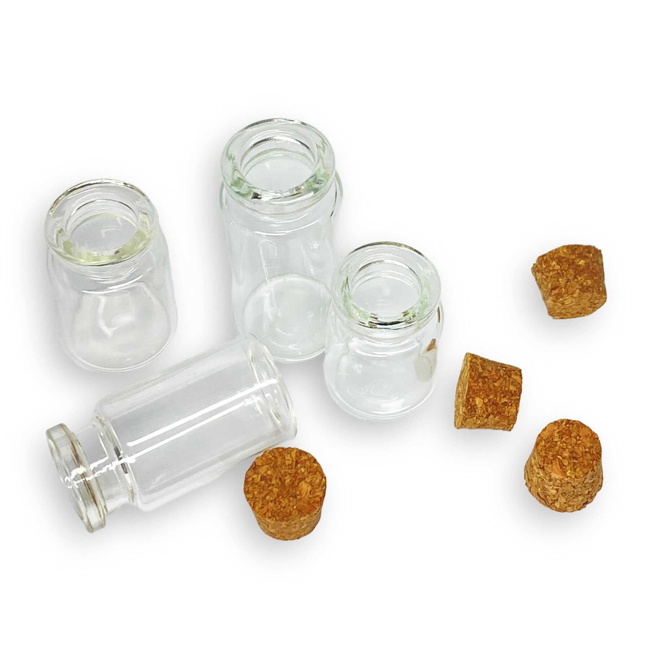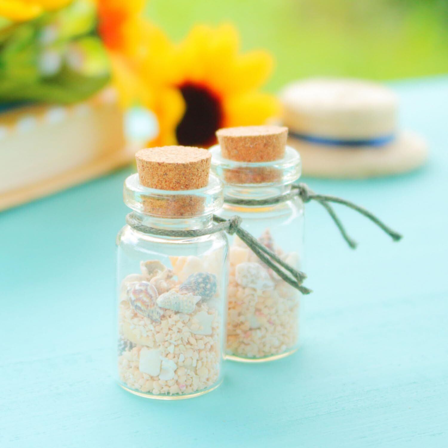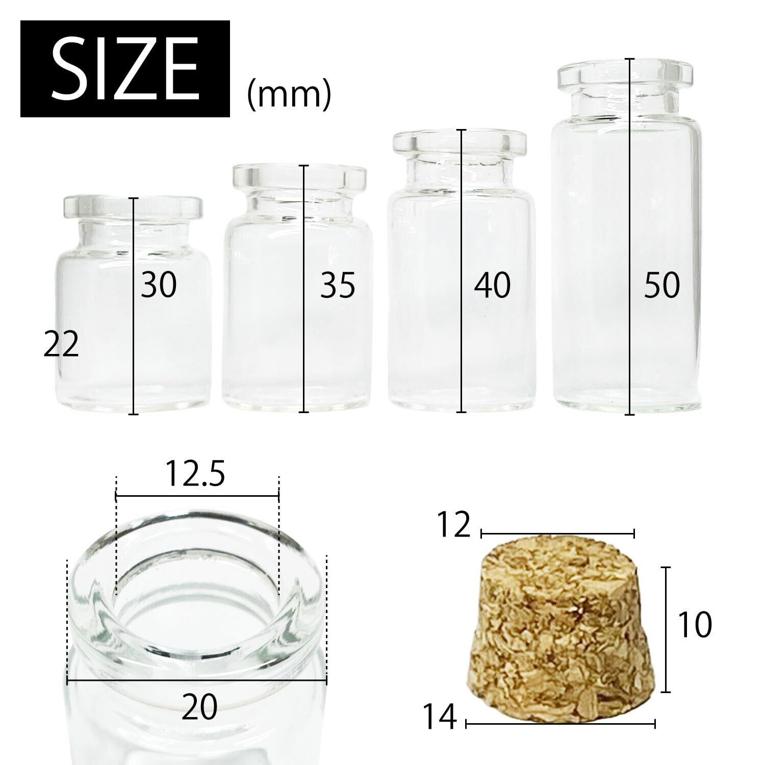 コルク栓付きのちいさなかわいいガラス小瓶です。透明度が高く、中のものが良く見えます。液体や粉末のサンプル保管に最適です。ラインストーンやビーズなどちいさなものをインテリアとして保管、収納するのにも役立ちます。1個当たりのサイズ・重量(約):幅22mm 高さ35mm 40g