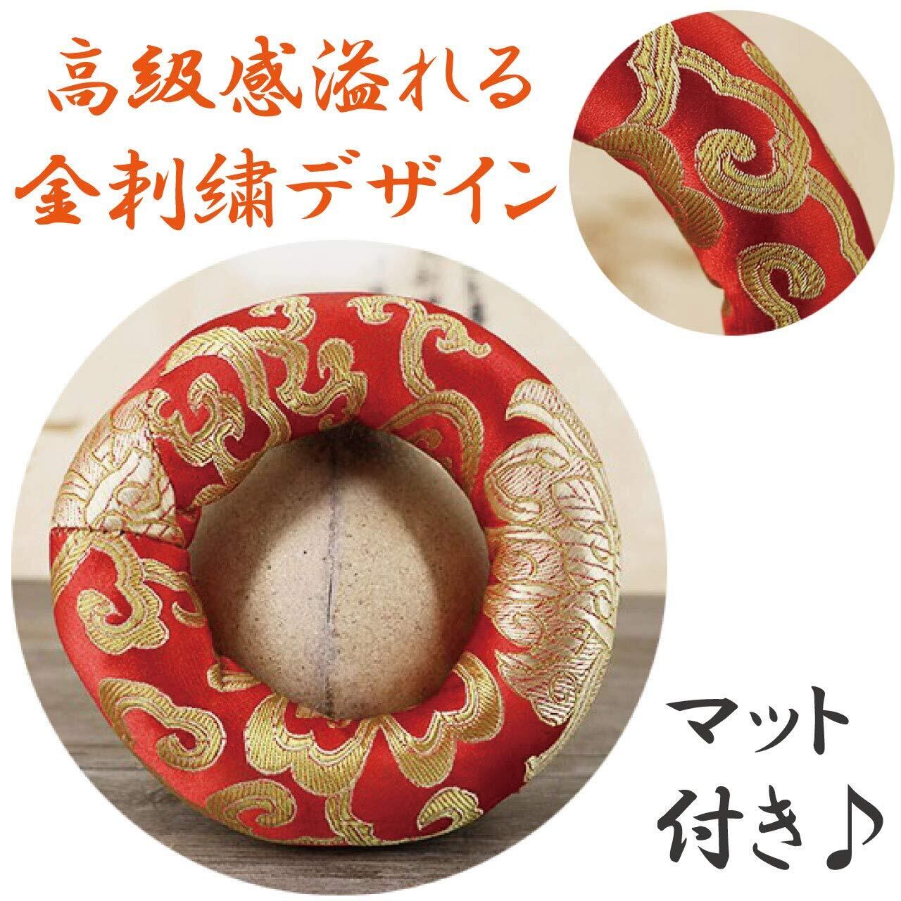 セット内容:シンギングボウル、スティック、円座マットの3点 本体(サイズ:口径約9.5cm、高さ約4.5cm 重量:約300g 材質:銅) 円座マット(サイズ:直径10cm 重量:40g) ※モニターの環境等により、色の見え方に若干差が生じる場合がございます。