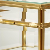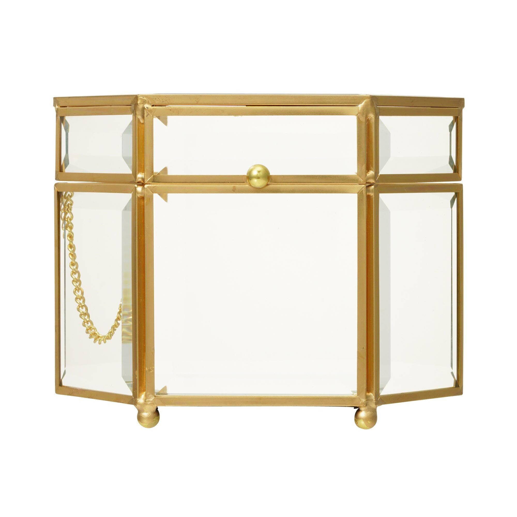 ゴールドのメタルフレームが高級感あふれる、上品なデザインの小物入れです。シンプルでありつつ、ガラスとミラーの輝きが素敵なアイテムです。