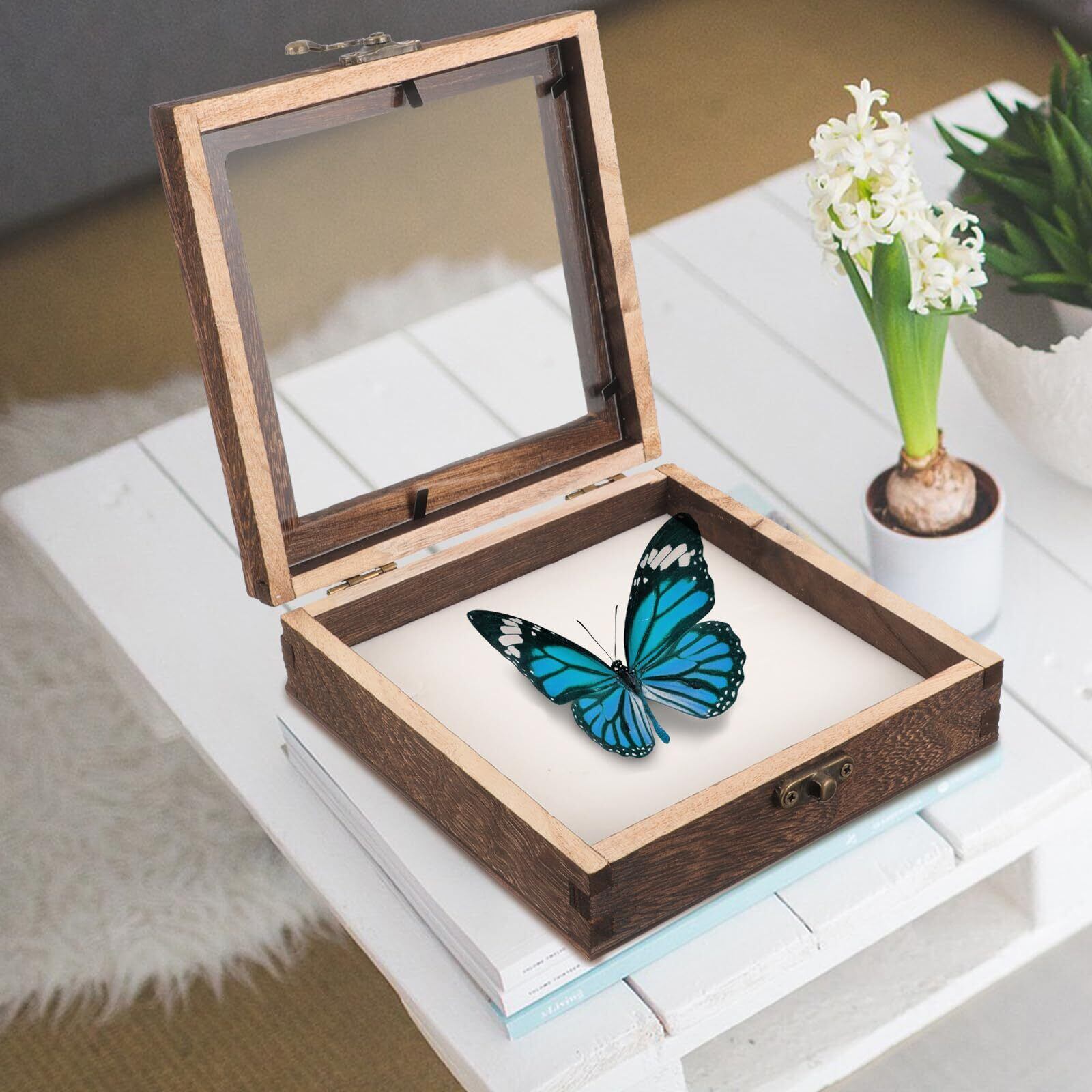 【数量限定】OUNONA 木製標本箱 昆虫標本ケース 小型 透明アクリル蓋付 5.9インチ正方形 ディスプレイボックス ジュエリーやコイン収納用 コレクション向け