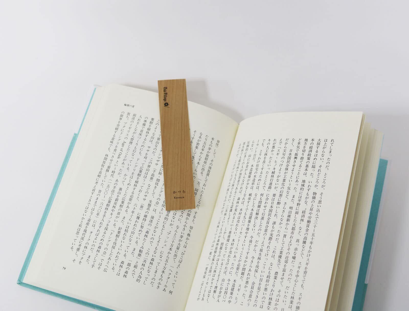 日本の無垢の木から作ったしおり。薄くスライスした木と木の間に和紙を挟んでおり、割れにくい作りになっています。樹種毎に異なる色合いや一枚ごと異なる木目をお楽しみ頂けます。