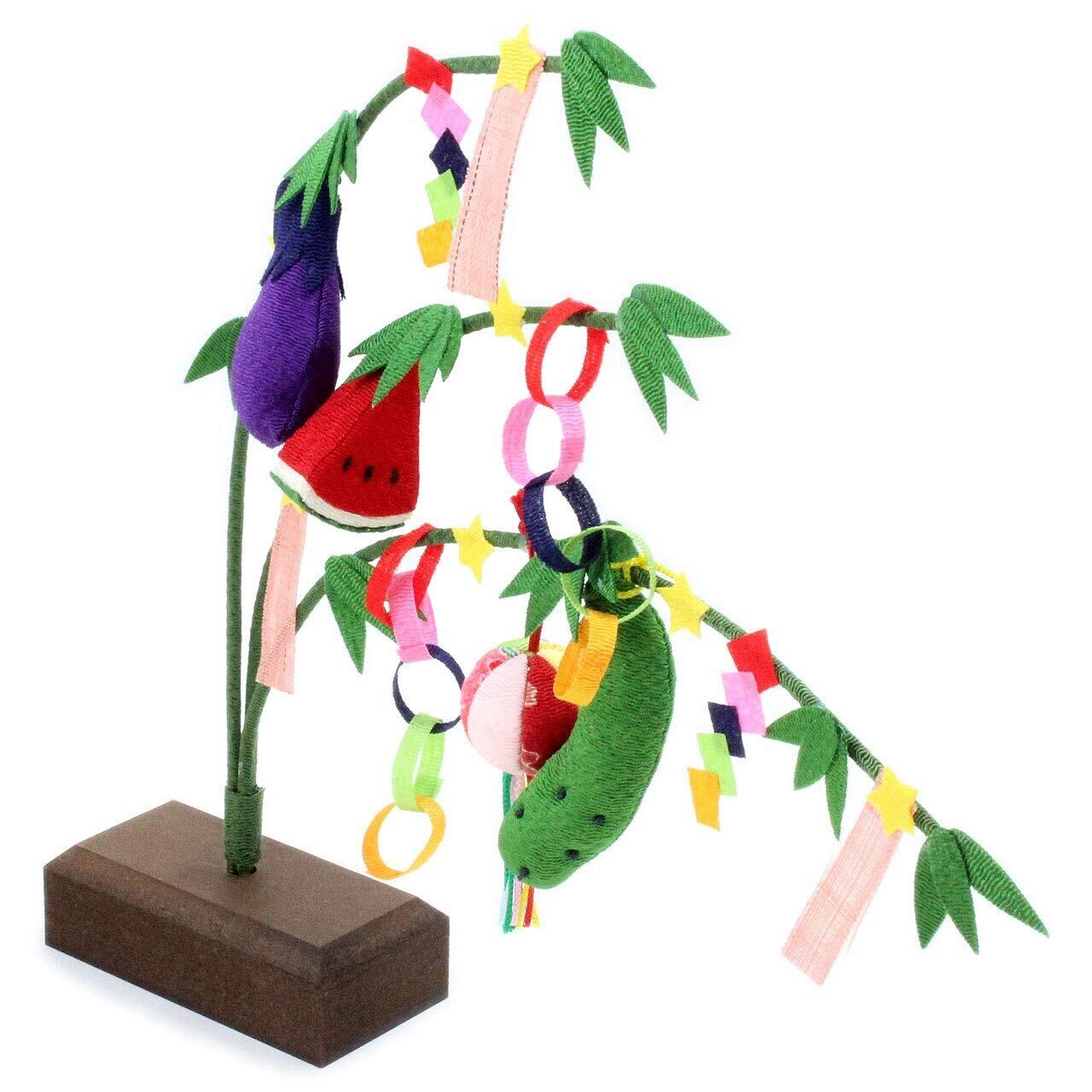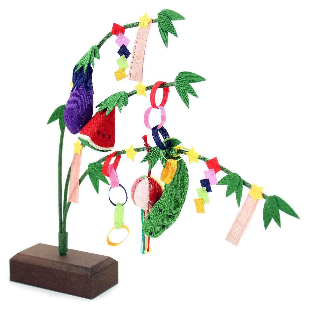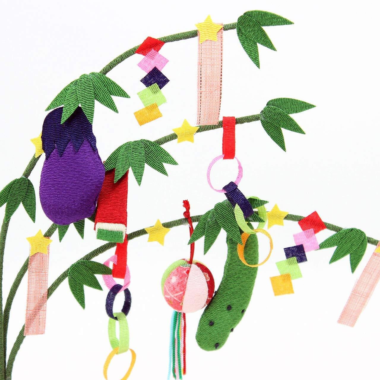 季節のインテリアとして手軽にお飾り頂ける龍虎堂の和雑貨 ひとつひとつ手づくりされたちりめん細工の七夕飾り、 コンパクトな卓上サイズです。