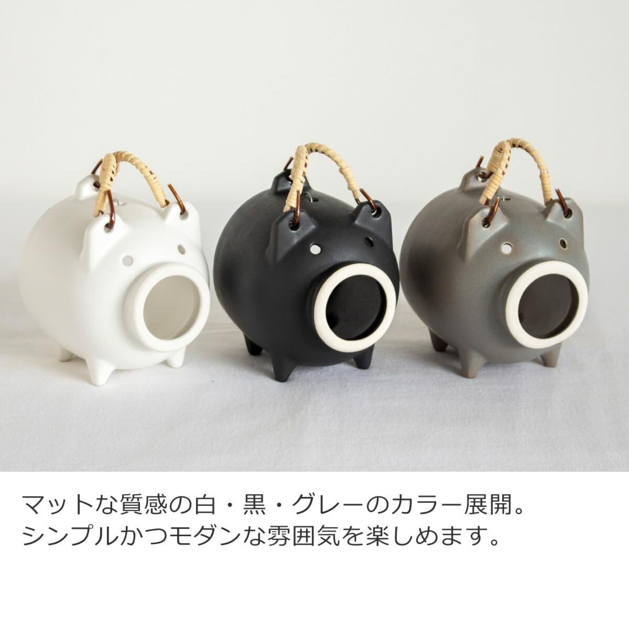 かもしか道具店 蚊取り線香入れ 蚊取り線香 ホルダー ケース ぶた 豚 陶器 屋外 蚊遣りブタ 萬古焼 日本製 (こぶり 白)