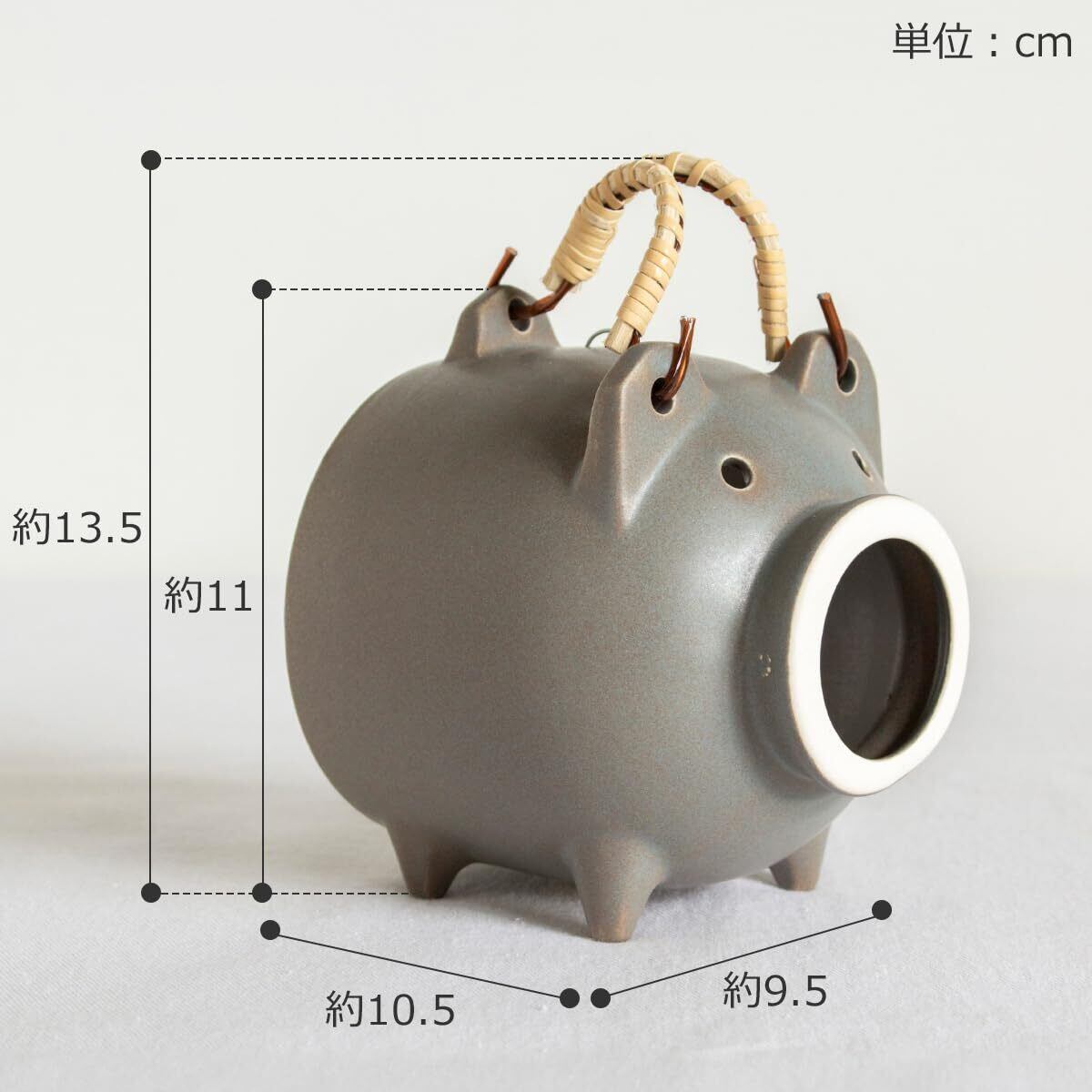 ブタの表情や輪郭、模様、取っ手まで丁寧に作られた一品。ほっこりと可愛らしく、夏のワンシーンを彩ります。マット質感の白・黒・グレーからお選びいただけます。