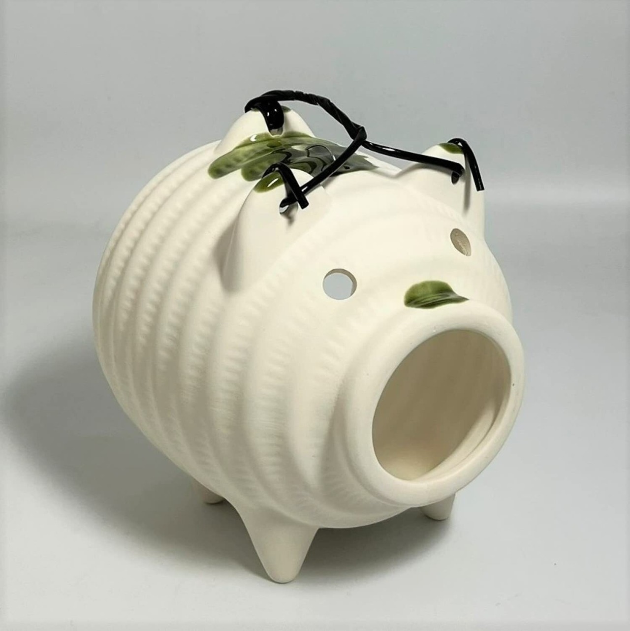 耐熱性が高く壊れにくいと定評のある、伝統工芸、萬古焼の蚊遣り器です。熱伝導性が低く、本体が熱くなりにくいのも特徴。円筒状で、豚の小さな口元から煙を少しずつ出すことができるので、部屋が煙だらけになりすぎることがないです。